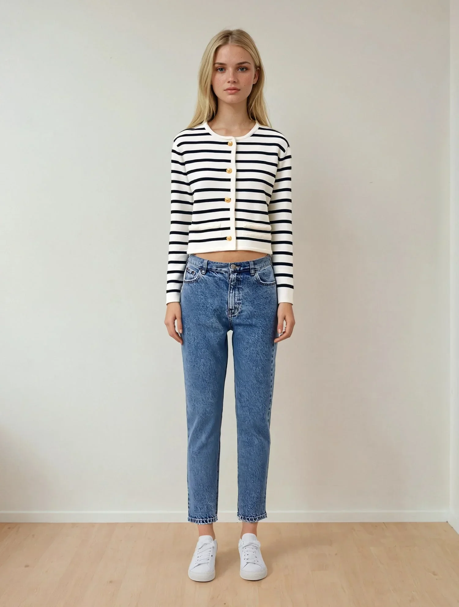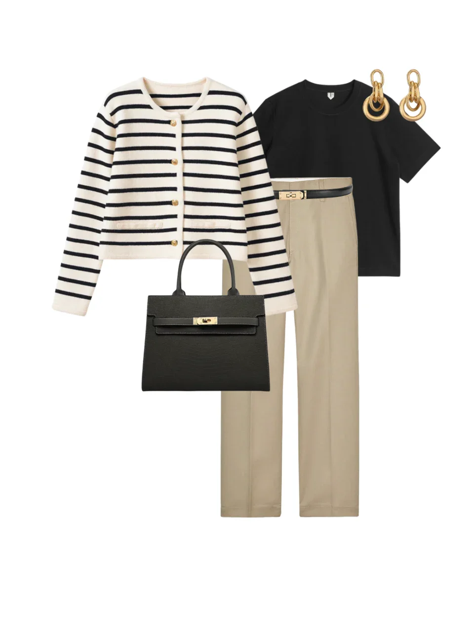 Cardigan boutonné en maille à rayures classiques Composition: 30 % coton, 70 % polyester T-shirt ajusté au style intemporel Composition: Coton Pantalon de travail décontracté et ample Always Professional Composition: Coton Ceinture Right On The Line Composition: 90 % polyuréthane, 10 % alliage Sac élégant de grande capacité et polyvalent Composition: PU Taille : 28*21*12 […]