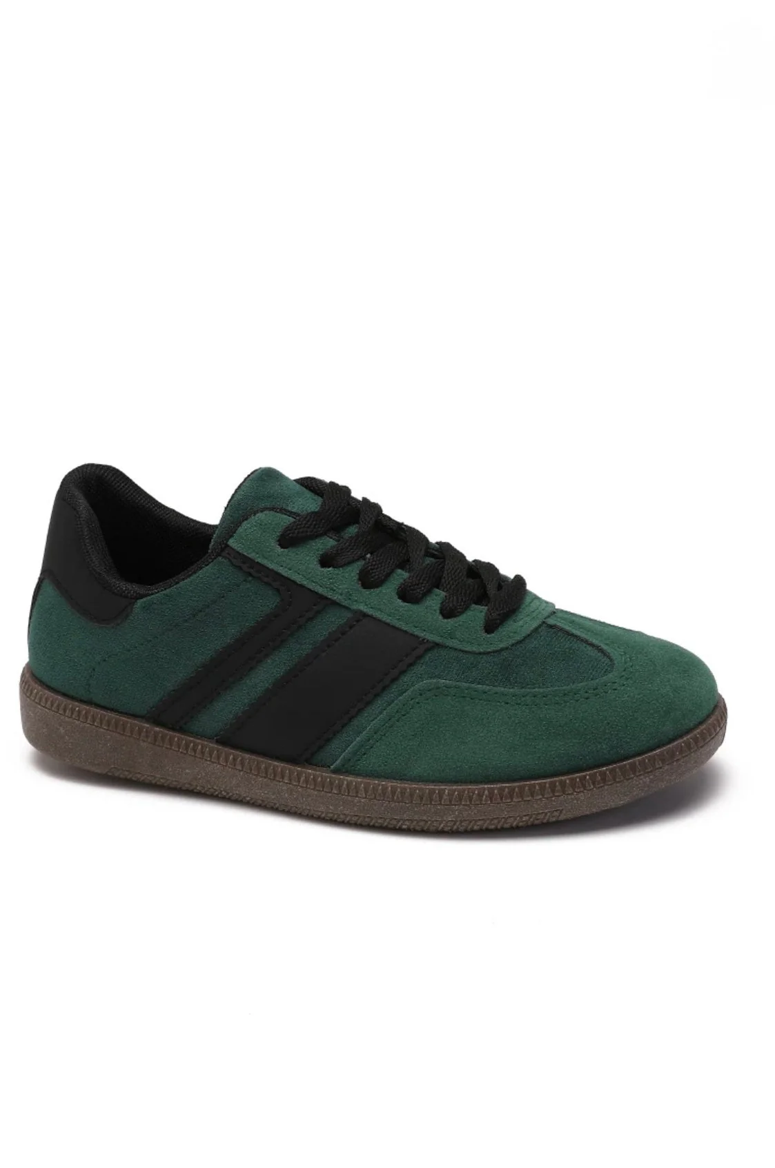 Ajoutez une touche de style original à vos looks du quotidien avec ces baskets vert forêt aux lignes sportives et modernes. Leur design minimaliste rehaussé de bandes noires apporte un contraste élégant, parfait pour composer des tenues casual chic.