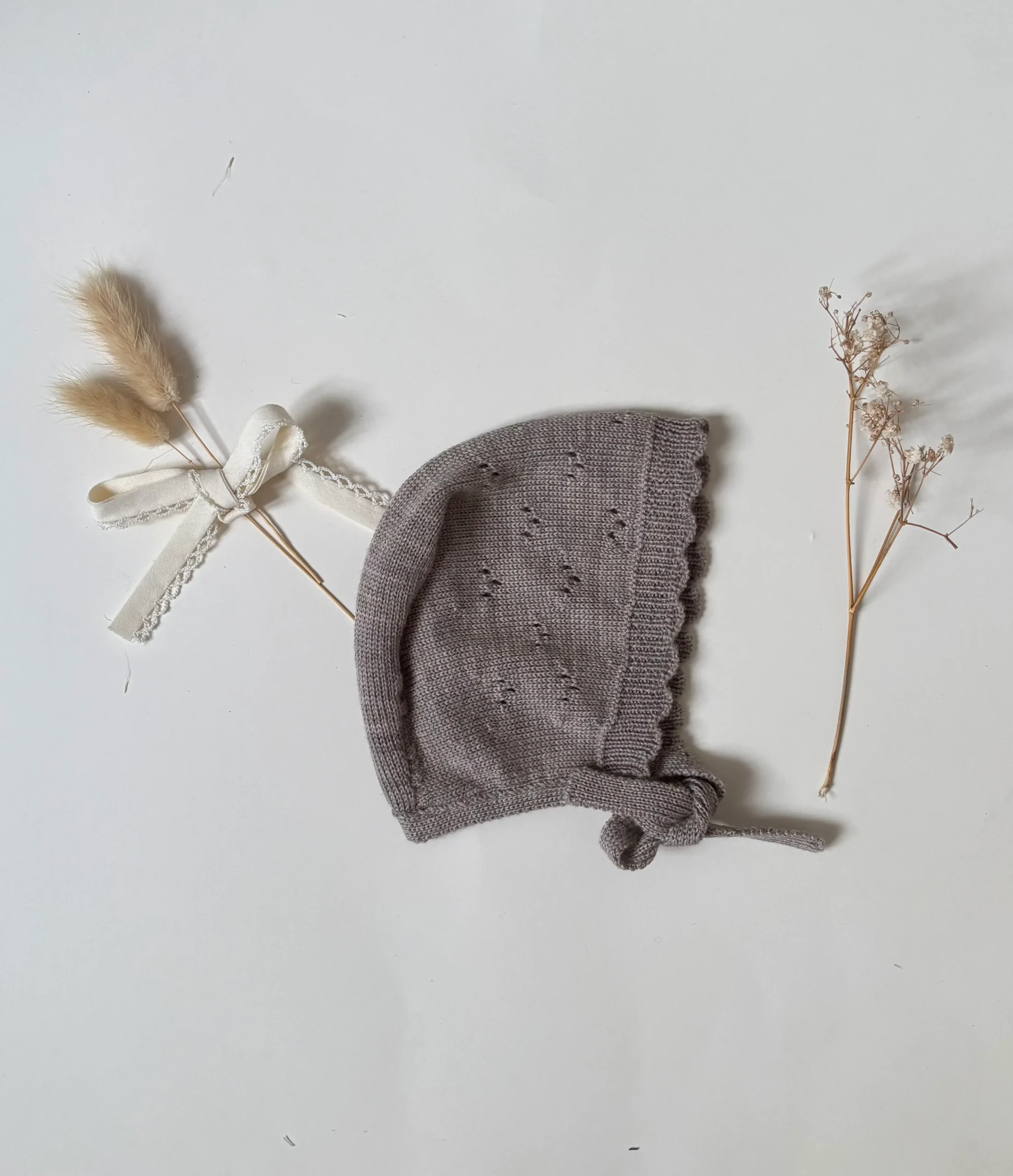Béguin avec de la laine YSEE – Gris – tricoté en France