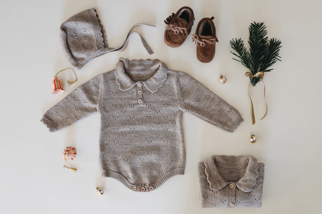 Béguin en maille 100% laine, pensée pour offrir chaleur, douceur et confort au quotidien. La laine sélectionnée est naturellement respirante, souple et douce, tout en étant lavable en machine en cycle délicat, idéale pour les tout-petits. Le tricot présente un joli motif ajouré sur l’ensemble du corps. Le modèle est doté d’une finition festonné délicate […]