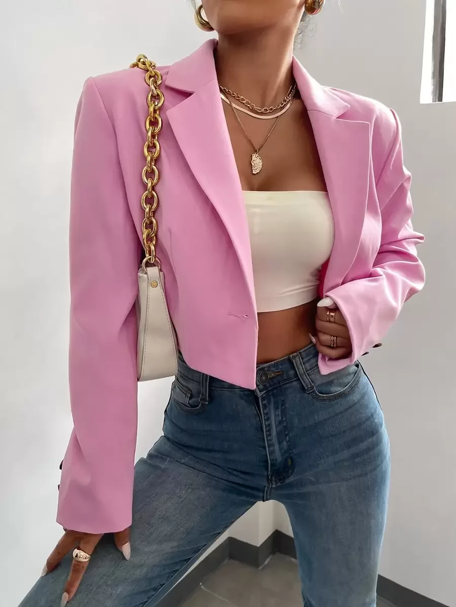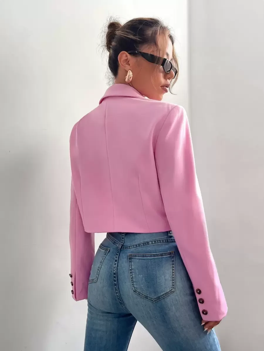 Coupe classique et longueur courte. Les manches longues équilibrent la silhouette, créant un look soigné et raffiné.