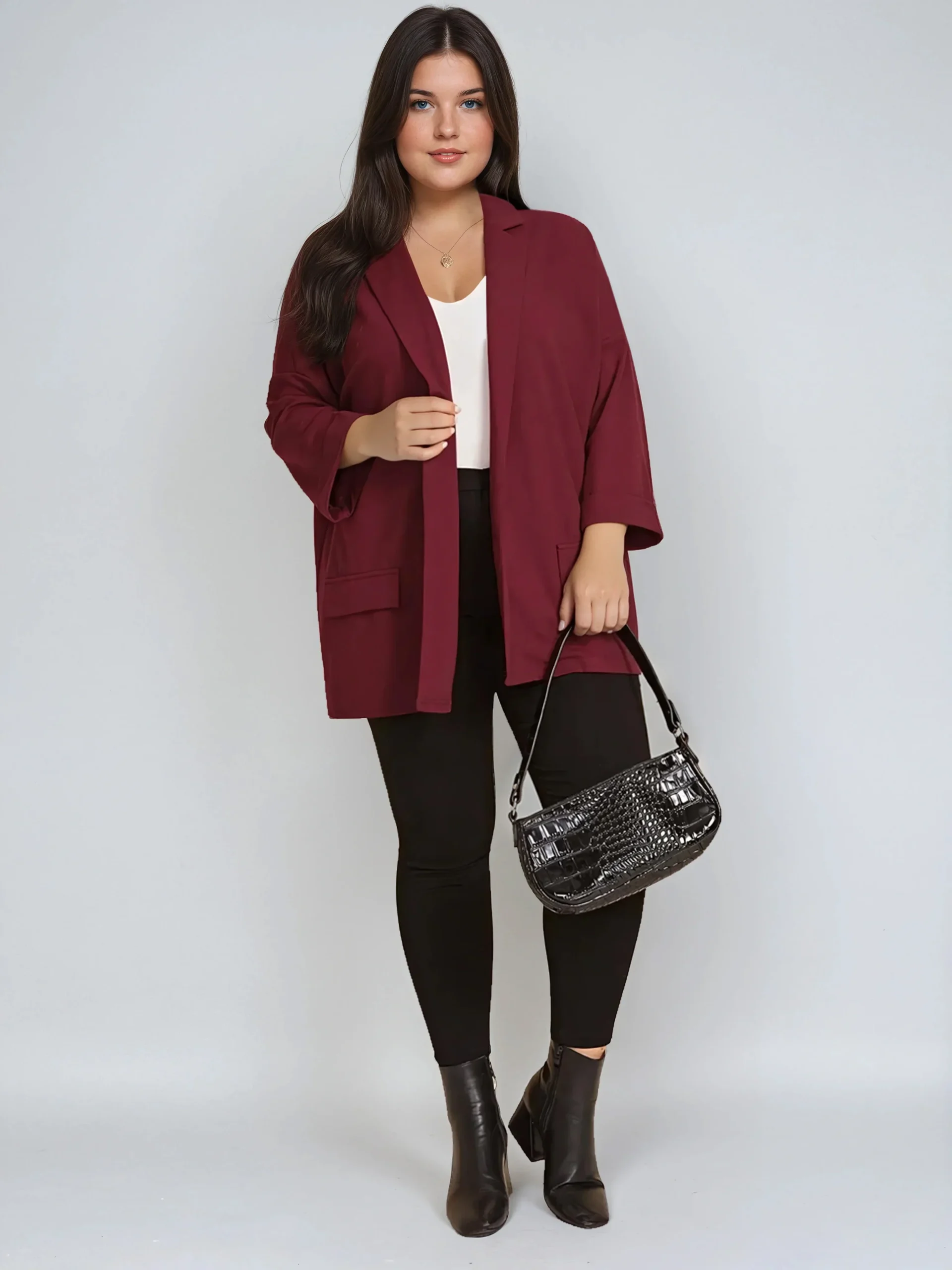 Blazer bleu marine grande taille à col cranté, essentiel pour le bureau