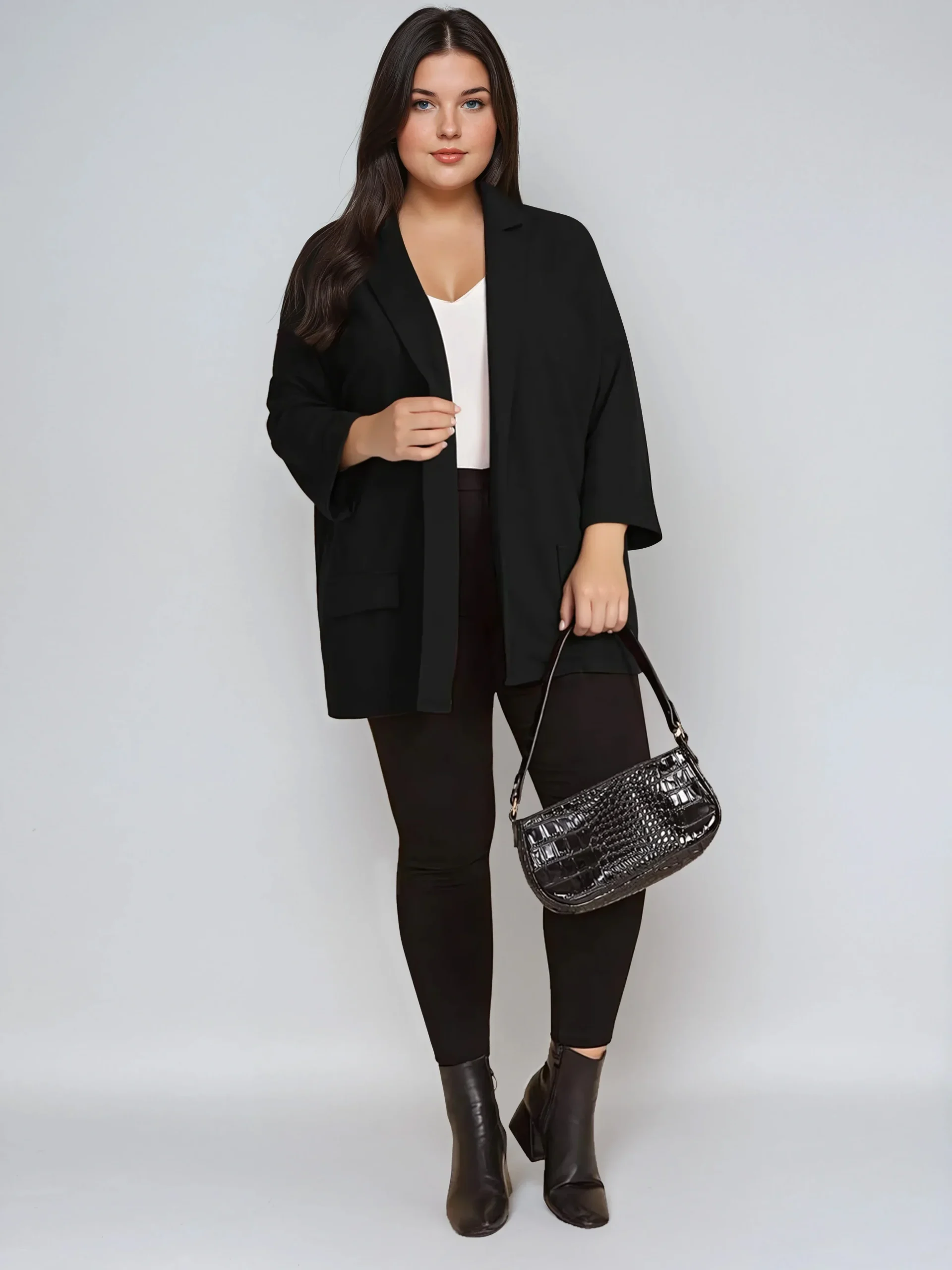 Blazer noir boutonné grande taille, élégance pour le bureau