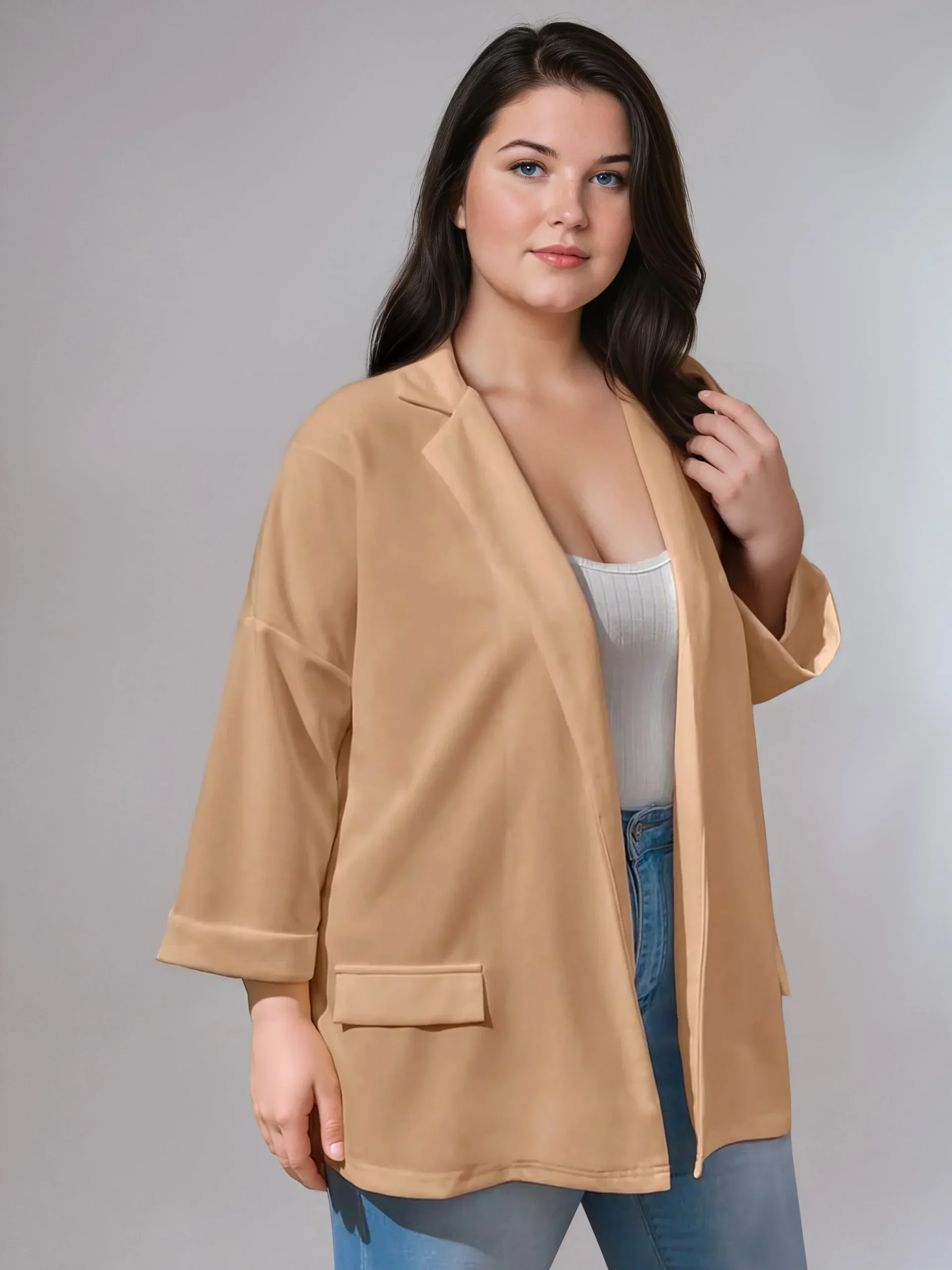 Blazer à col cranté grande taille bleu marine, style décontracté pour le travail