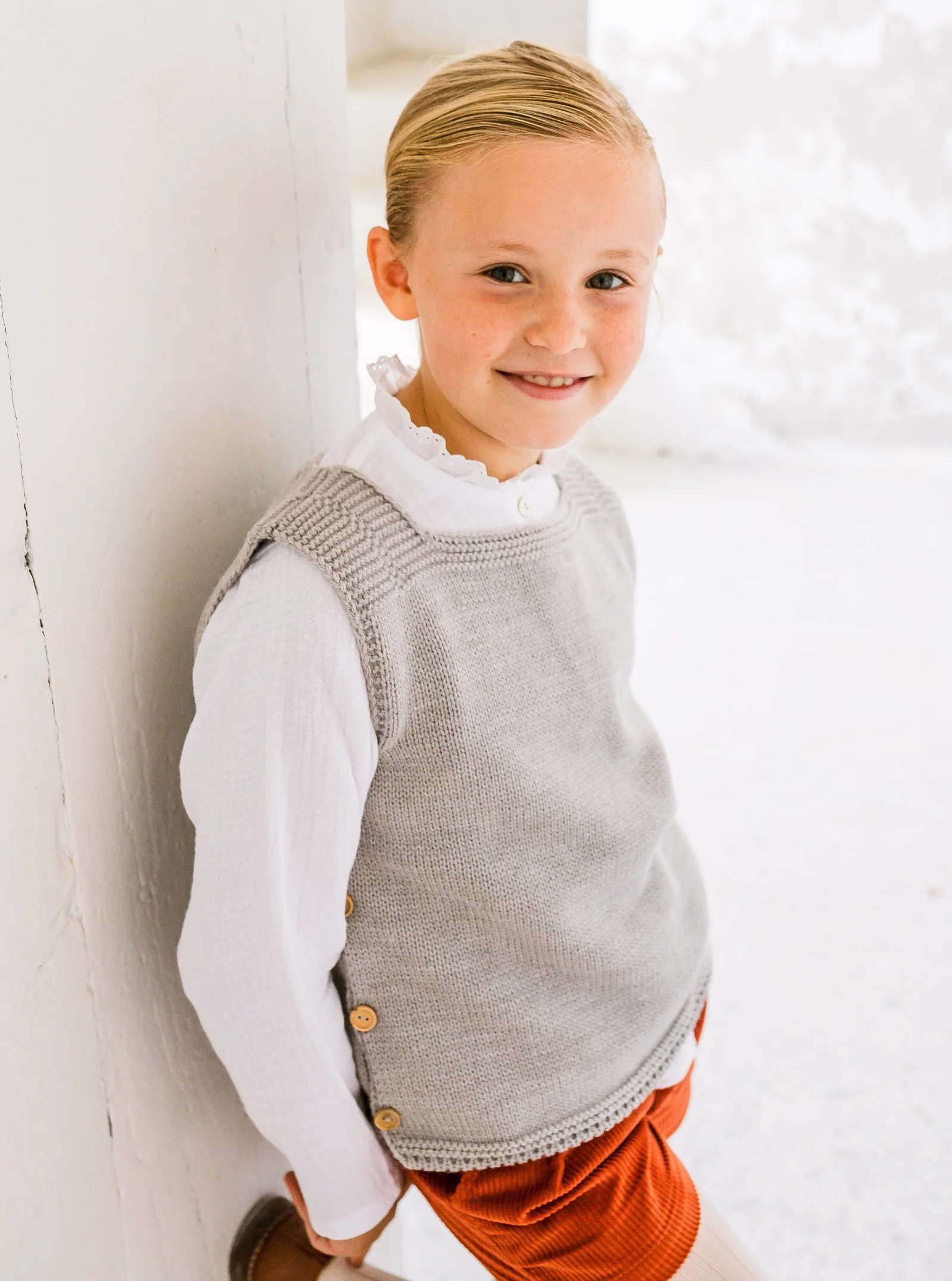 Se décline en deux versions : double gaze blanche et mini vichy argile.