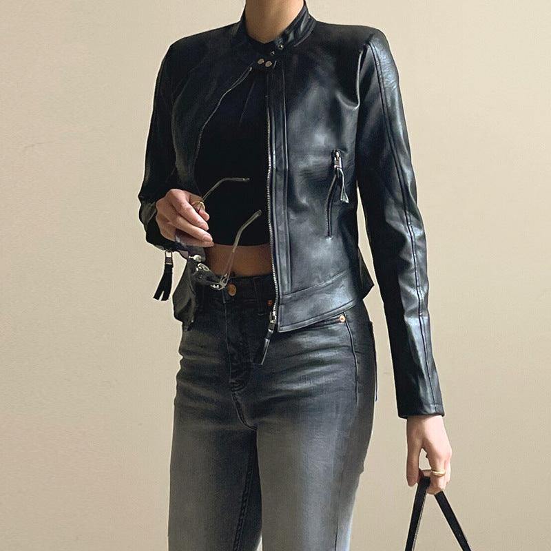 Ce blouson slim noir en similicuir est l’alliance parfaite entre modernité et sobriété.