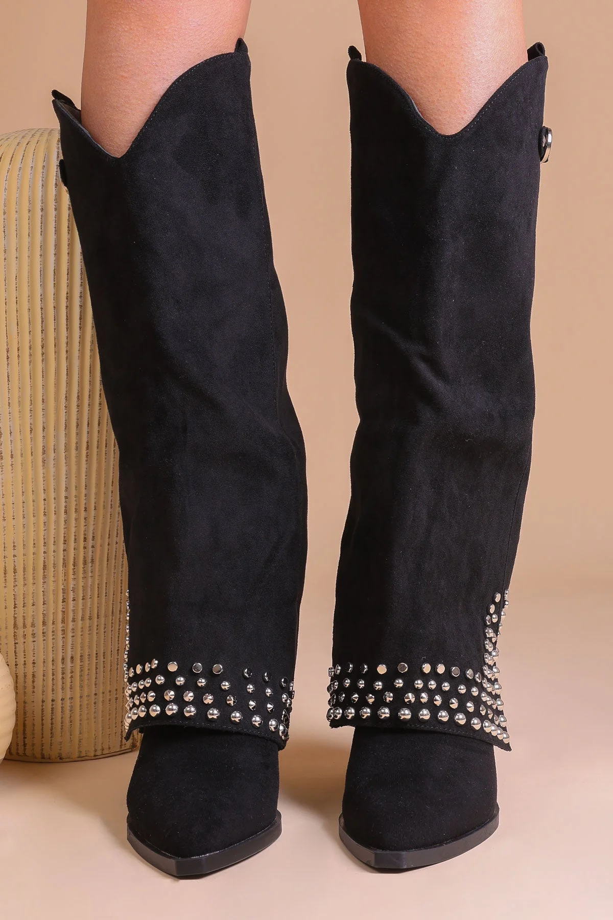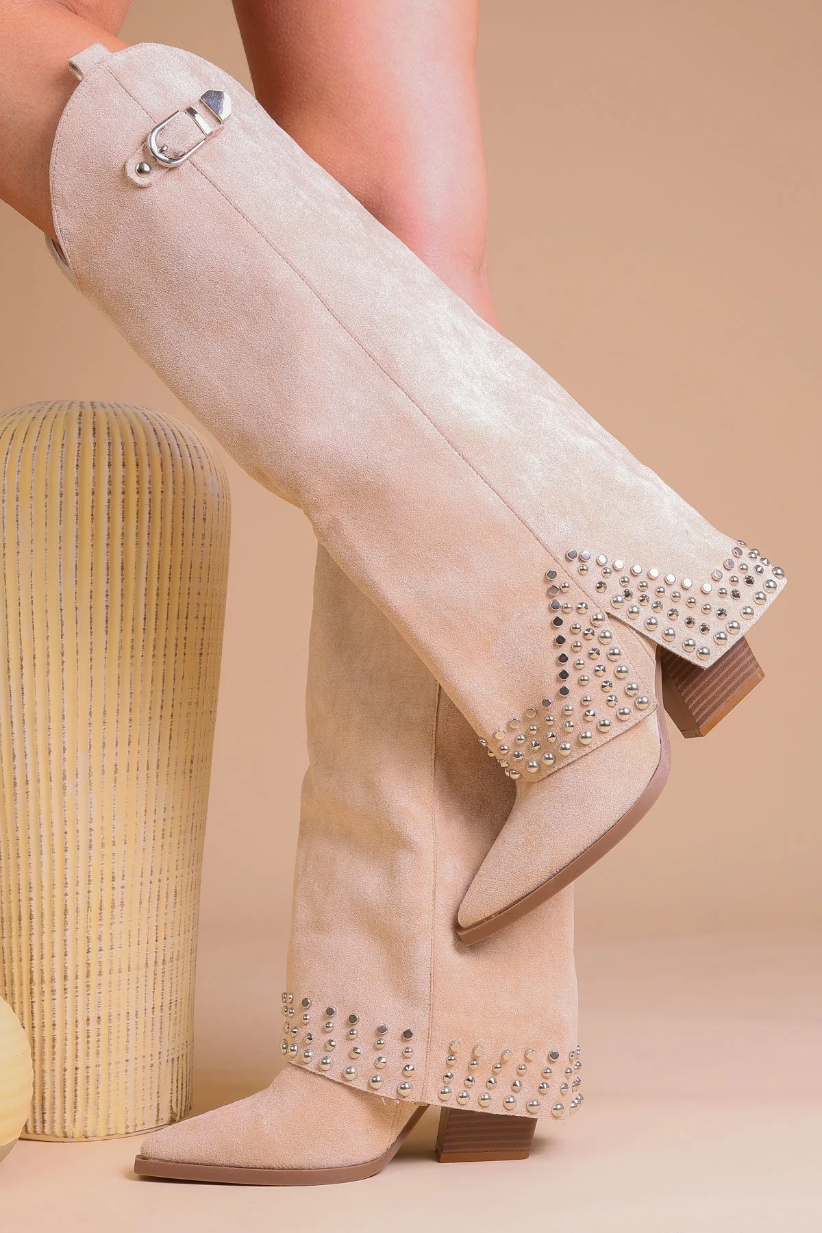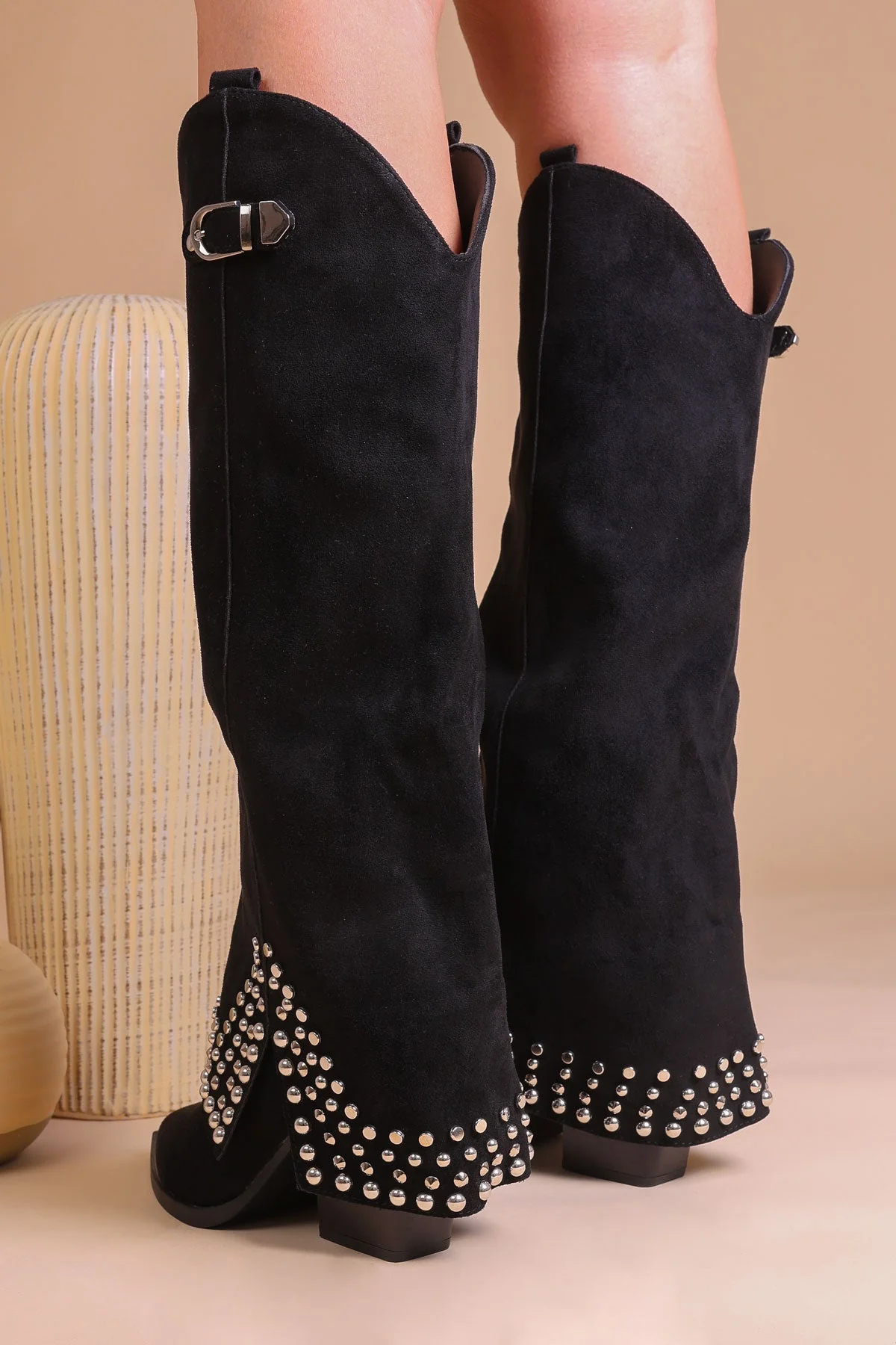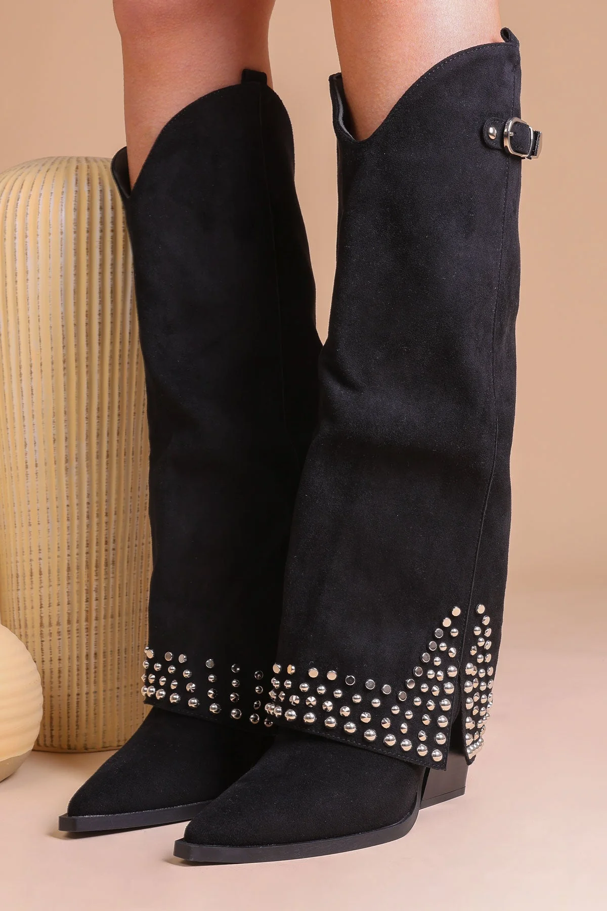 - Coupe haute au genou avec boucles et clous pour un look tendance et audacieux