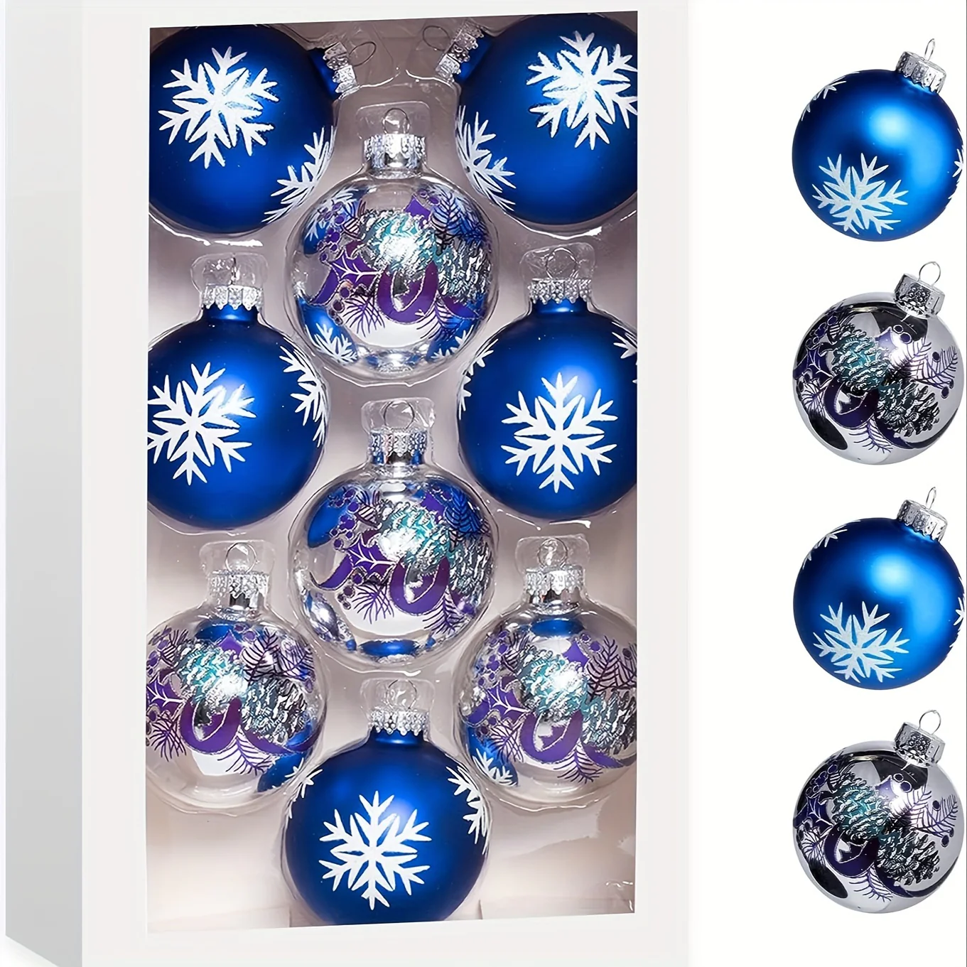 Ces boules de Noel en verre bleu embelliront votre Decoration Sapin Noel avec leurs nuances élégantes et leurs motifs en flocons de neige. Fabriquées en verre, elles reflètent magnifiquement la lumière.
