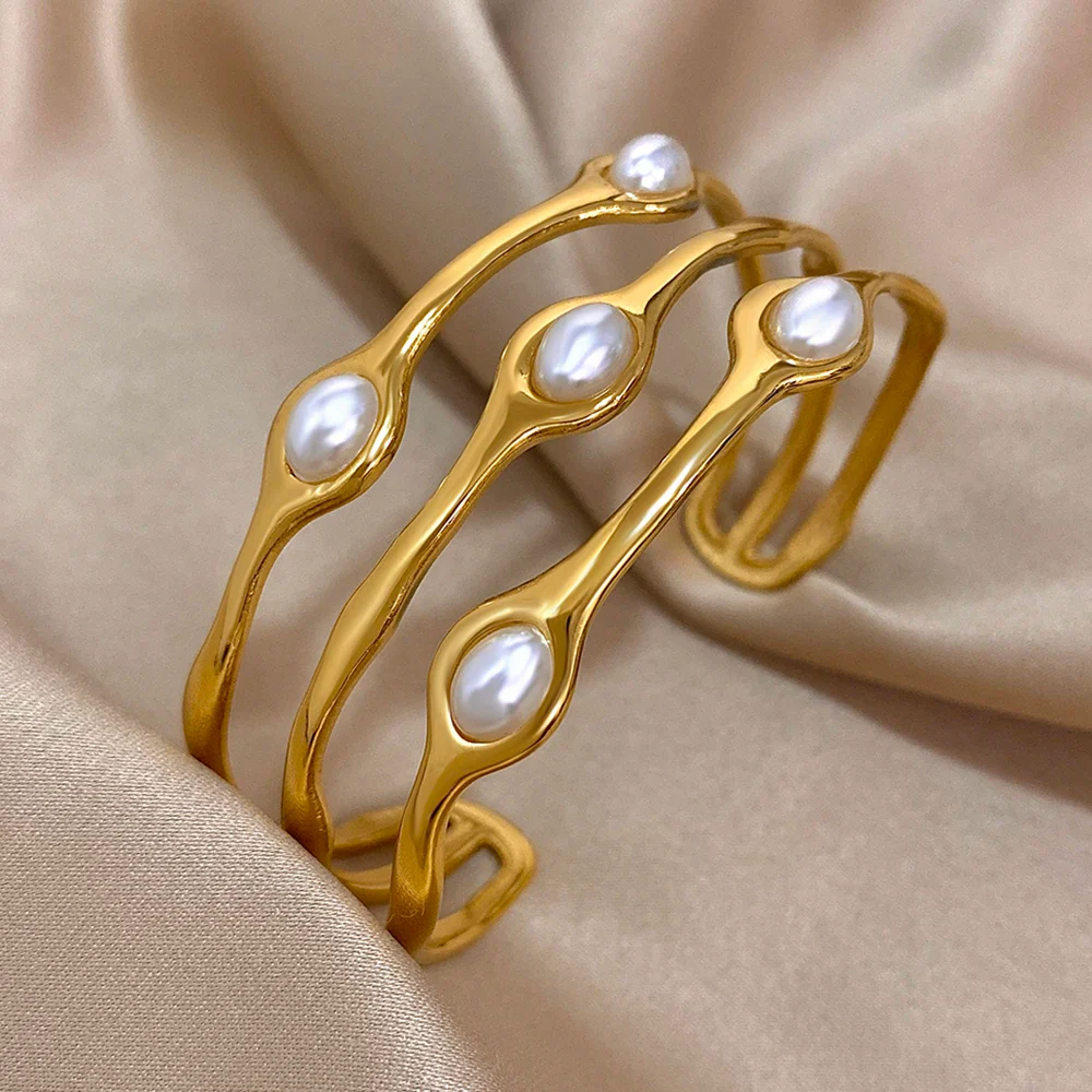 Ce bracelet manchette irrégulier en acier inoxydable doré apporte une touche de caractère à votre tenue. Son design sculptural, inspiré des bijoux anciens, séduit par son allure minimaliste et affirmée. Un bijou intemporel pour les femmes qui aiment se démarquer.
