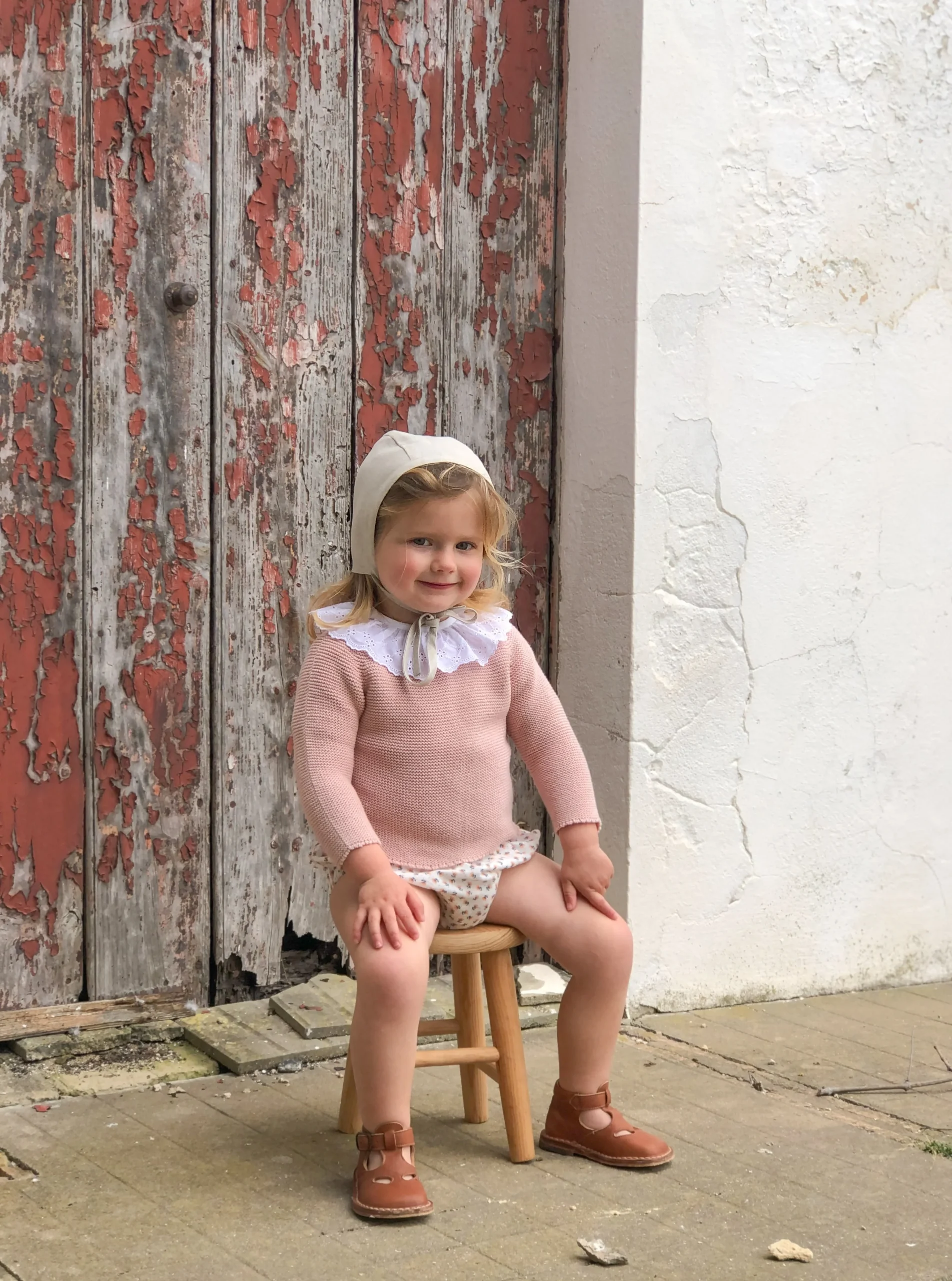 Disponible en couleur crème et vieux rose, du 3 mois au 3 ans.