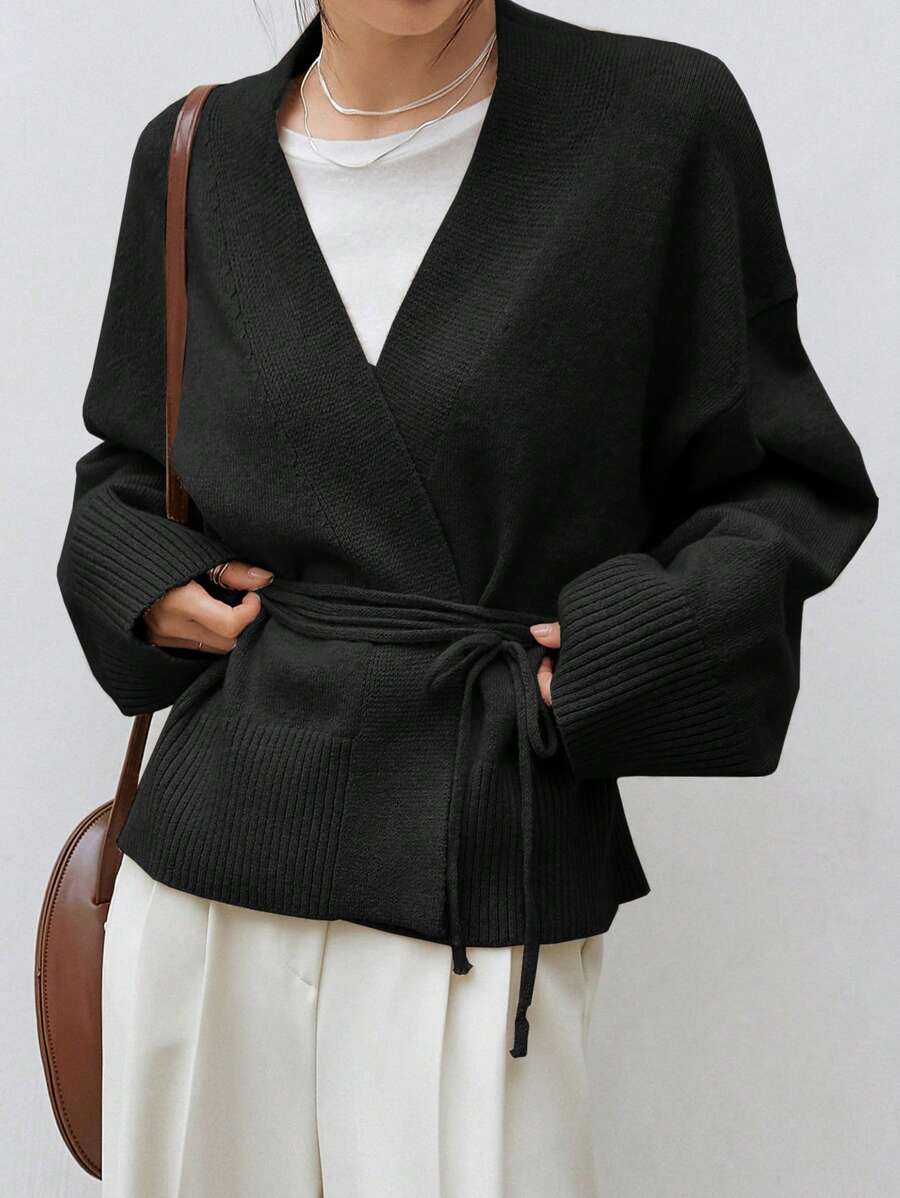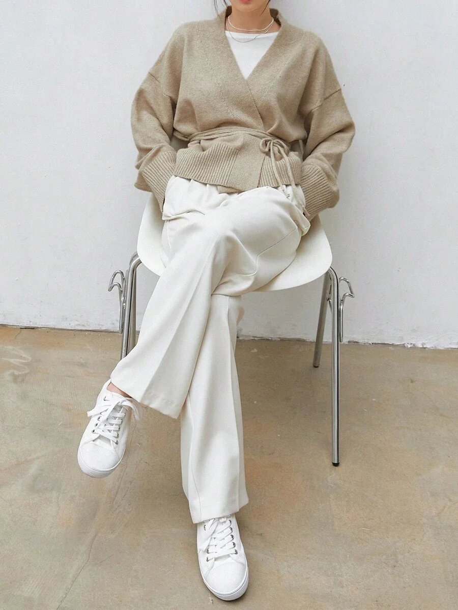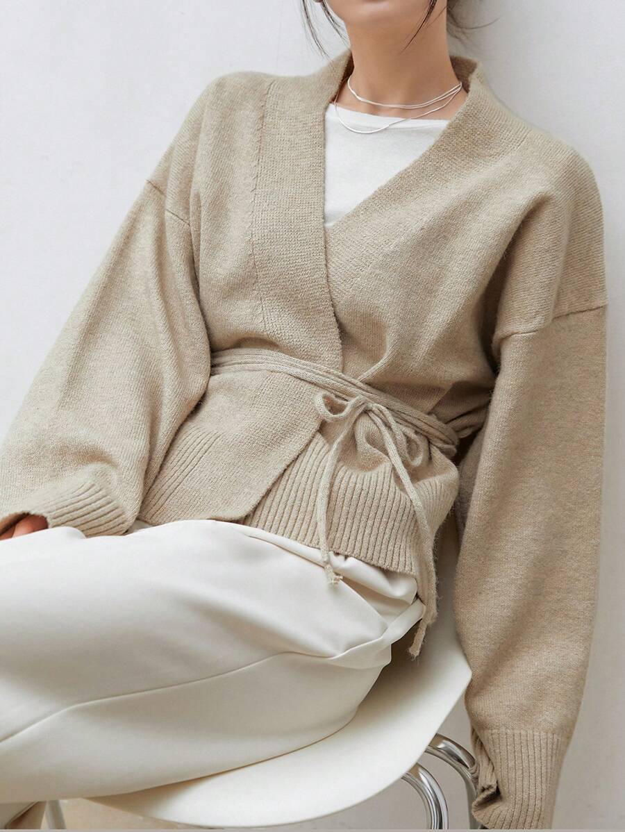 Cardigan abricot à épaules tombantes et ceinture
