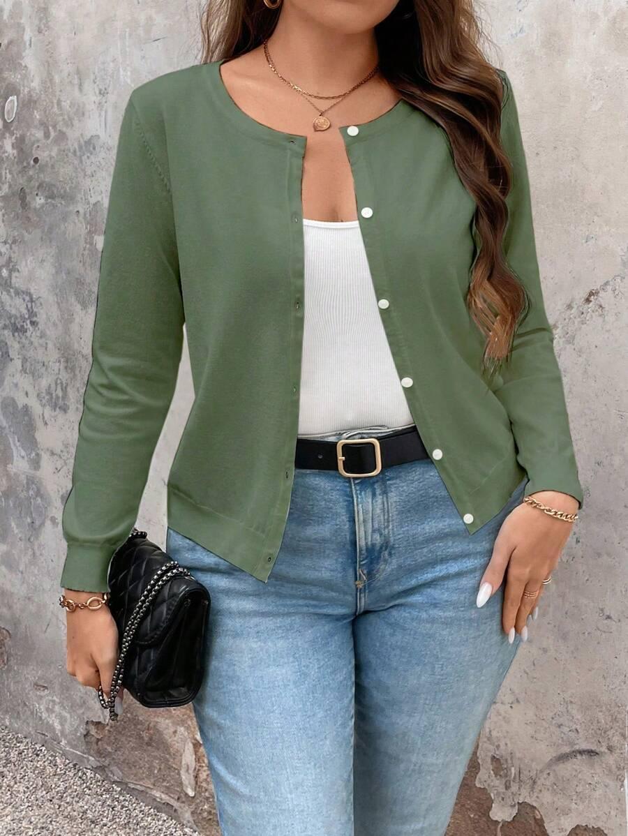 Cardigan grande taille abricot à manches longues et simple boutonnage confortable