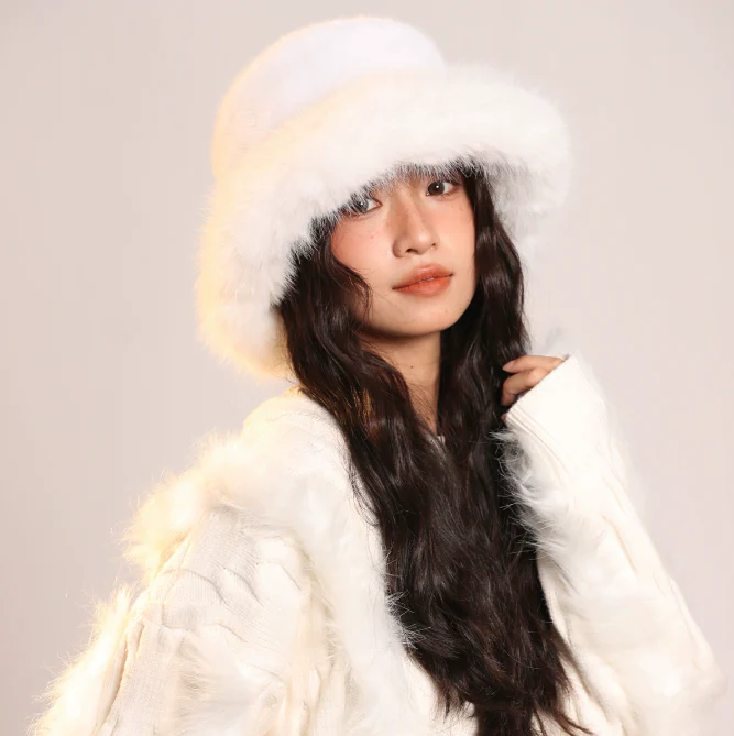 – Forme : bob rigide à bord large et fourrure moelleuse