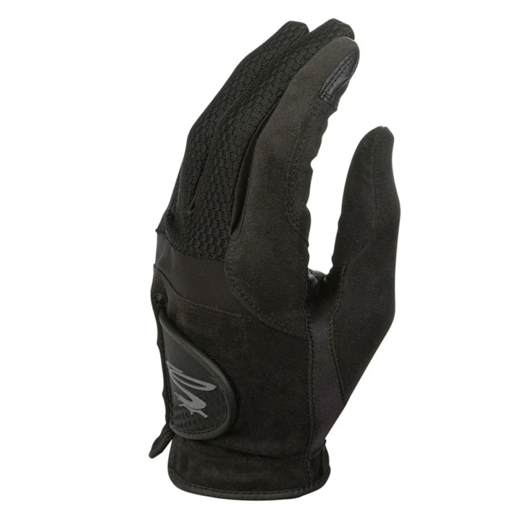 Paire de gants d’hiver Cobra Golf Storm Grip. La paume en daim Storm Grip offre une adhérence maximale par temps froid. La manchette allongée et ajustée maintient la chaleur pendant le jeu. L’index est compatible avec les écrans tactiles électroniques. Le revêtement DWR permet de garder les mains au sec. 90% polyester, 6% élasthanne, 3% polyuréthane, 1% nylon.
