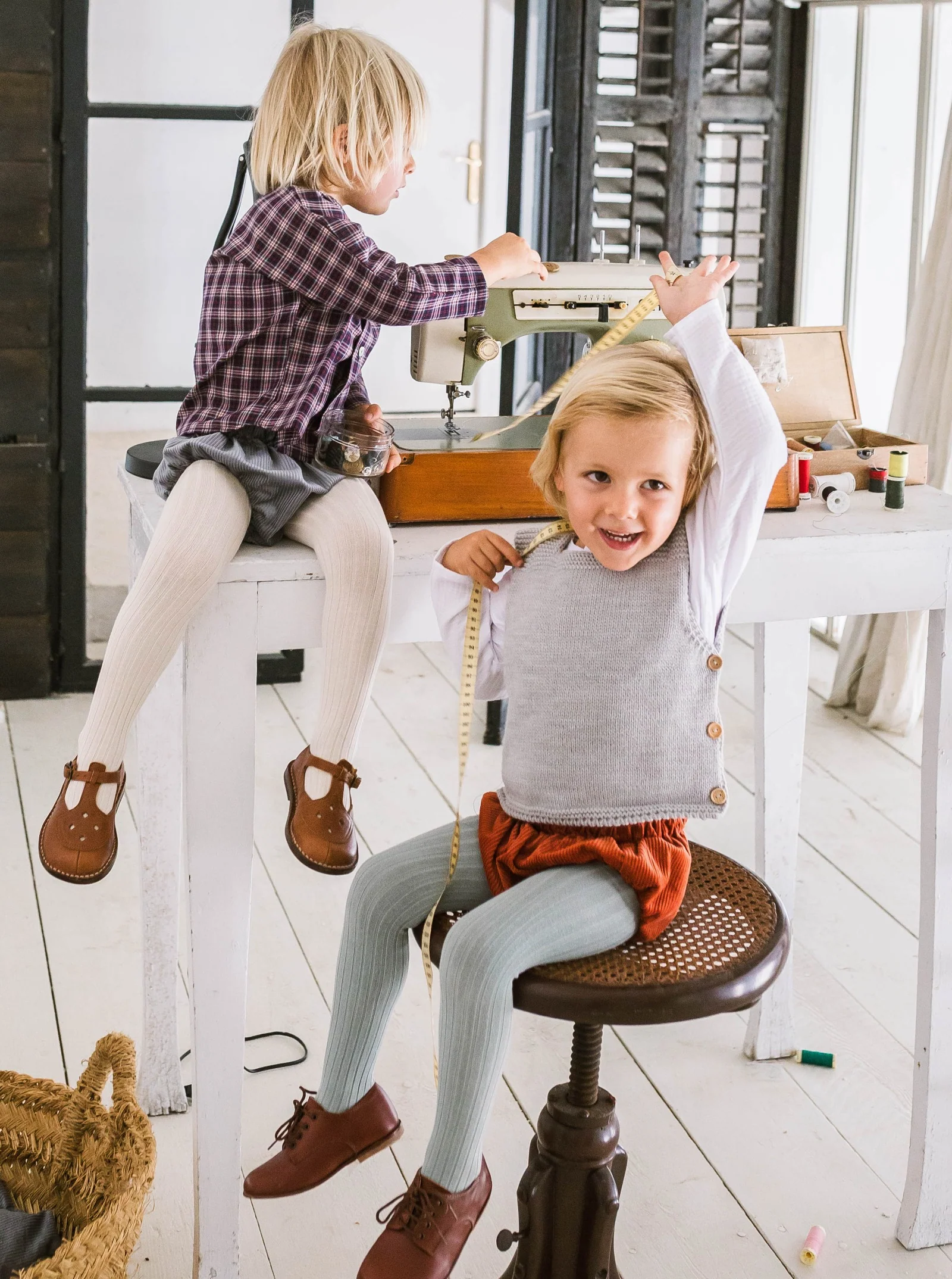 Collants maille côtelée vert de gris.