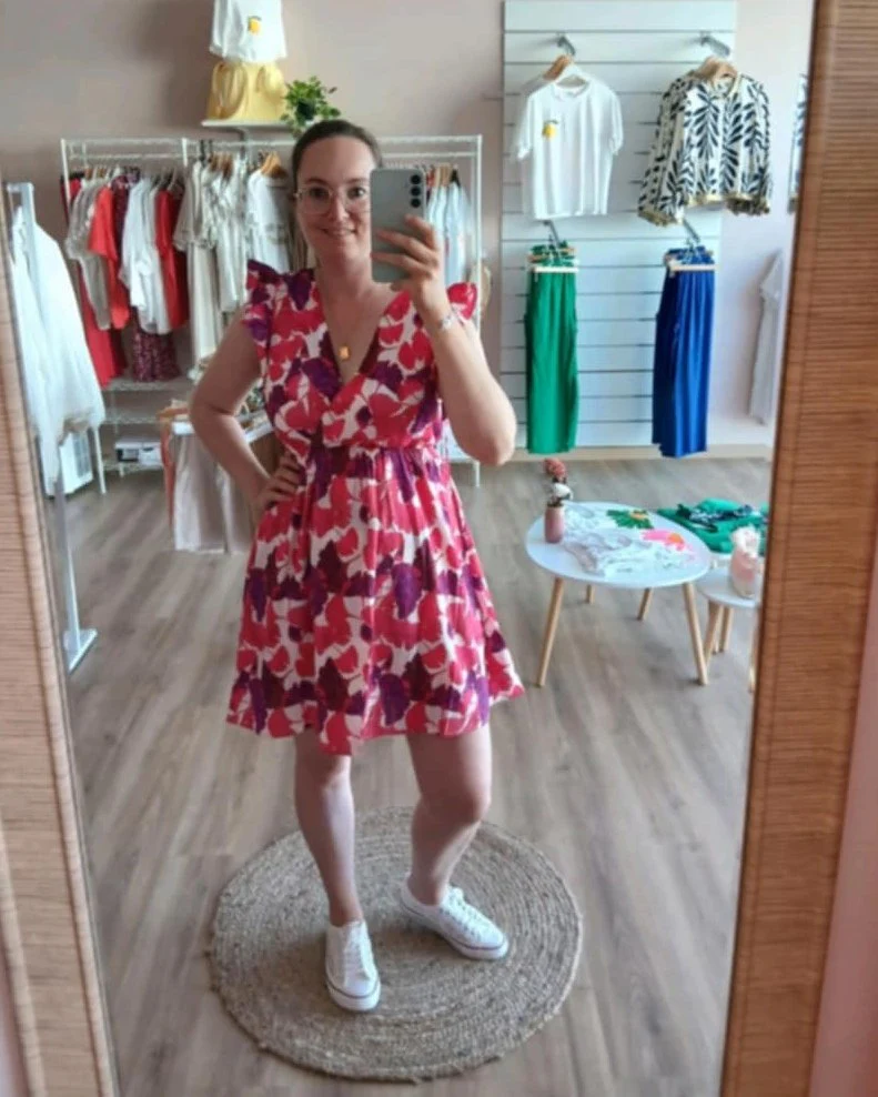 Découvrez cette combi-short originale ornée d’un délicat motif de feuilles de gecko rouges et roses qui apporte une touche de nature et de fraîcheur à votre garde-robe estivale. La Combi-Short AMBRE allie style casual et féminité avec son col en V flatteur et ses manches courtes. Pratique et élégante, elle se porte en une seule pièce pour un look complet et sans effort.