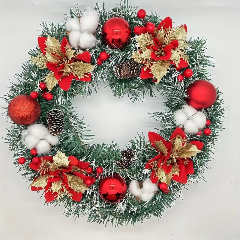 Cette Couronne de Noël en rotin naturel et feuilles artificielles décore élégamment toute porte d’entrée. Son style classique et son charme festif captiveront vos invités pendant Noël.
