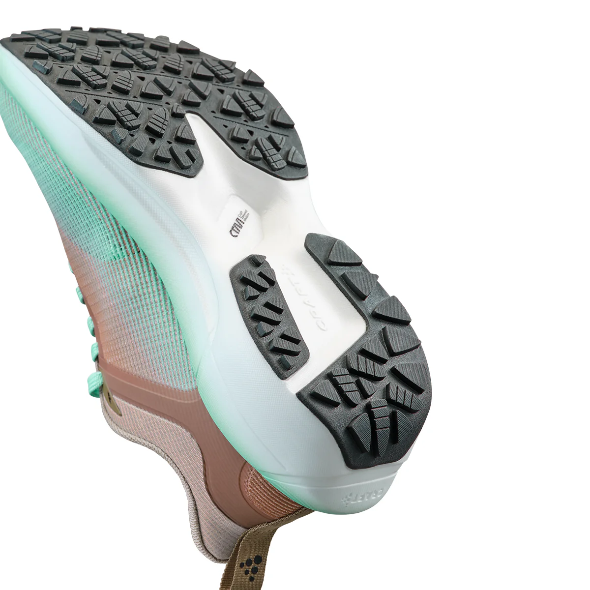 Semelle hybride HyperGrip Conçue pour la polyvalence, la semelle extérieure dispose de crampons à profil bas qui n’altèrent pas le confort sur route mais assurent une traction fiable sur les chemins de terre, le gravier ou les sentiers forestiers. C’est la chaussure idéale pour les parcours mixtes.