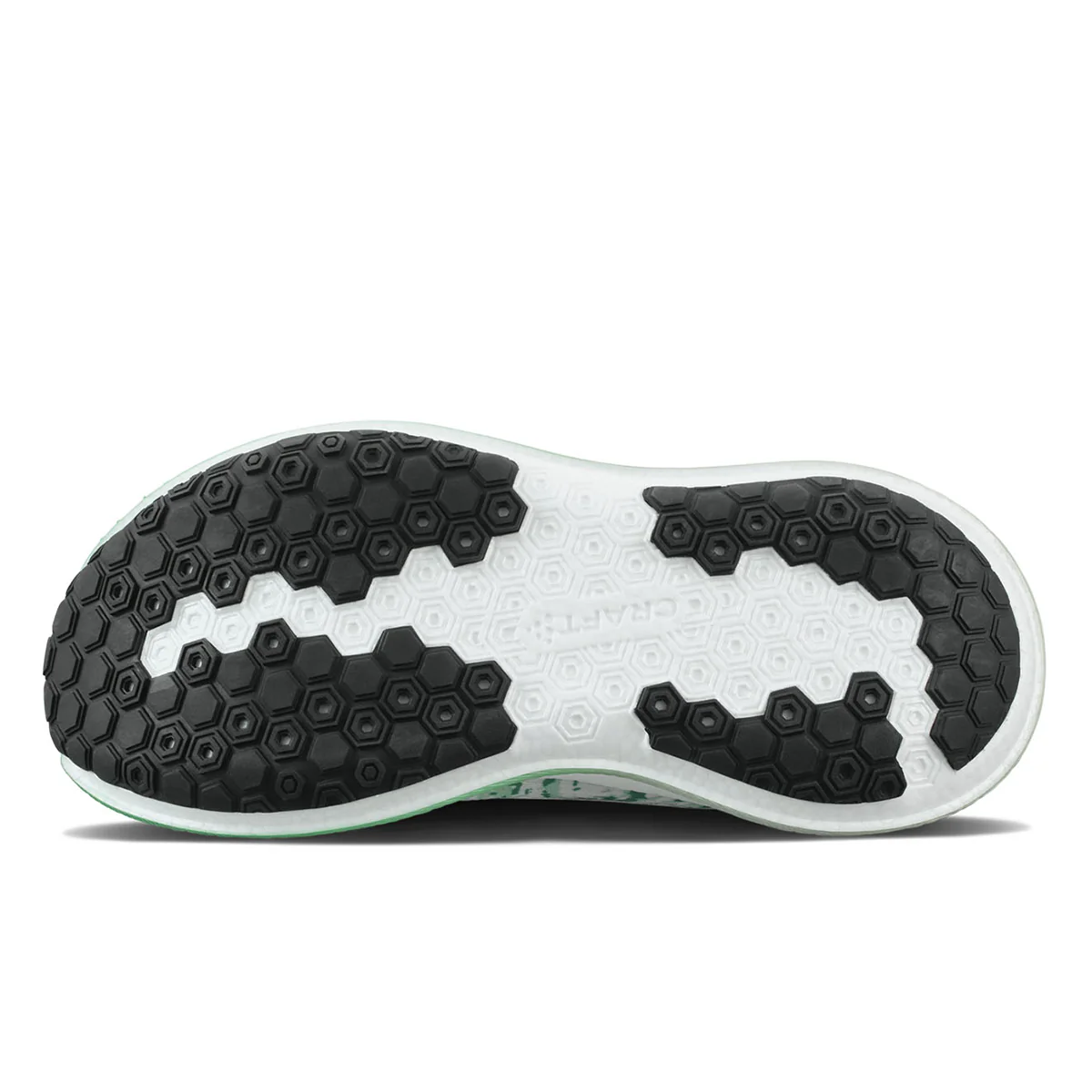 Stabilité et Transition La géométrie de la semelle est étudiée pour offrir une transition fluide. Sa base stable permet une réception sécurisante, tandis que le profil de la semelle accompagne le mouvement de bascule naturel du pied vers l’avant, facilitant ainsi la propulsion.