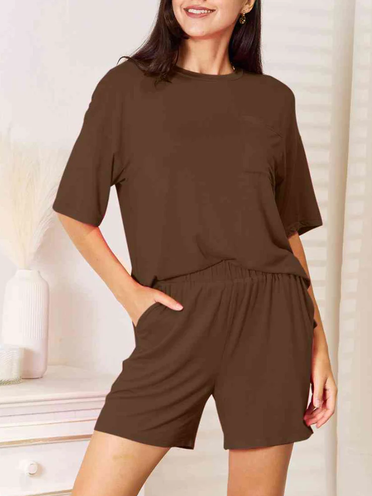 Réalisé en tissu léger et doux au toucher, cet ensemble deux pièces offre fluidité et liberté de mouvement. Le t-shirt ample tombe avec grâce, tandis que le short à taille élastique garantit un ajustement sûr et confortable. Une option chic et sans effort pour vos journées relax.