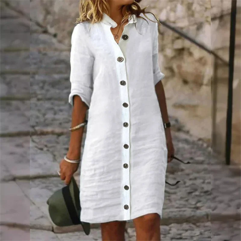 La robe chemise à manches courtes en coton et lin est un incontournable élégant et confortable pour toutes les saisons. Fabriquée à partir d’un mélange de coton et de lin respirant, cette robe vous gardera au frais et à l’aise toute la journée. Dotée d’un devant boutonné, d’un col flatteur et de manches courtes, la robe chemise classique offre un équilibre entre élégance décontractée et style sans effort.