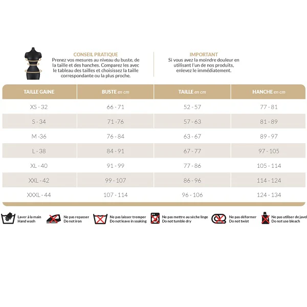 Cette gaine a 3 rangées de crochets, ce qui vous permettra de la régler.