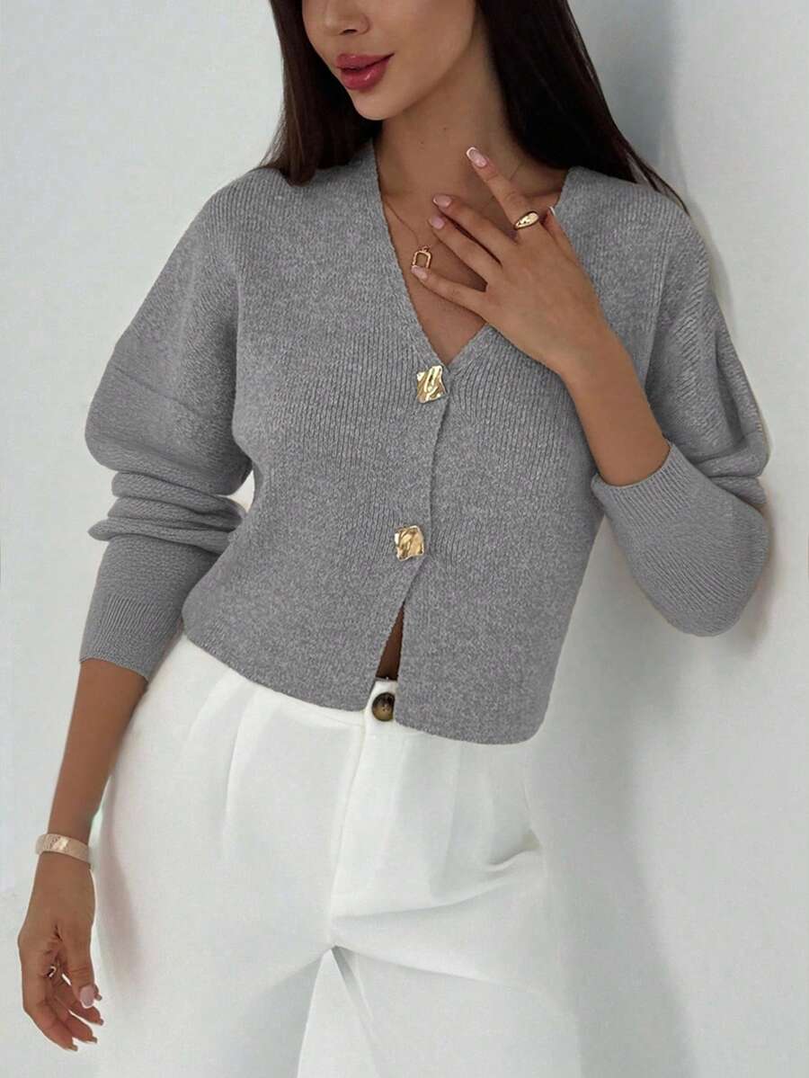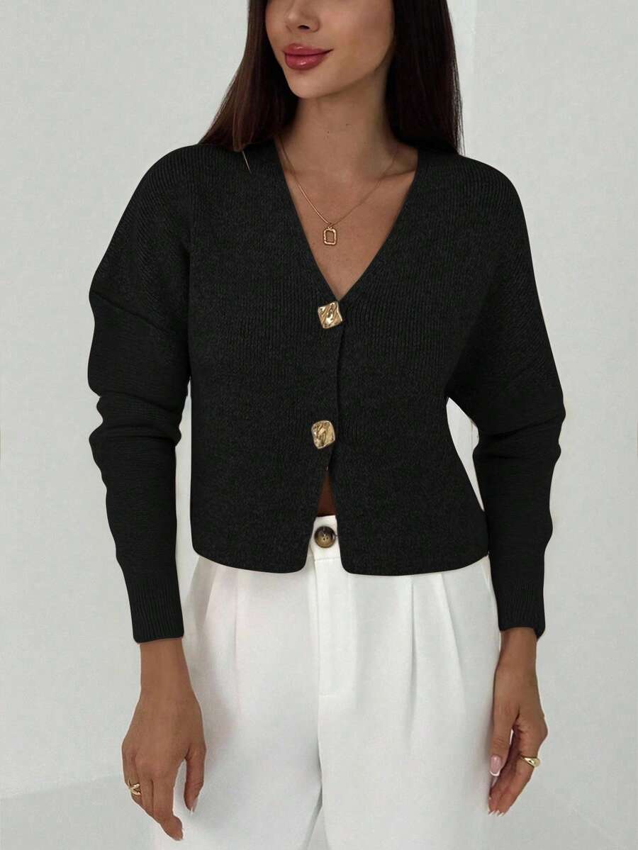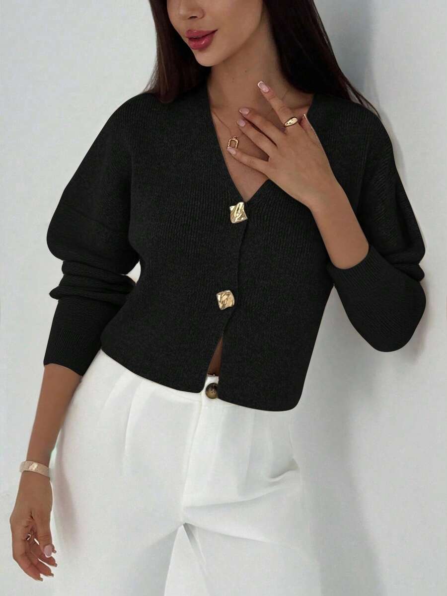 Soyez le premier à laisser votre avis sur “Gilet en maille à col V et manches longues boutonné sur le devant”