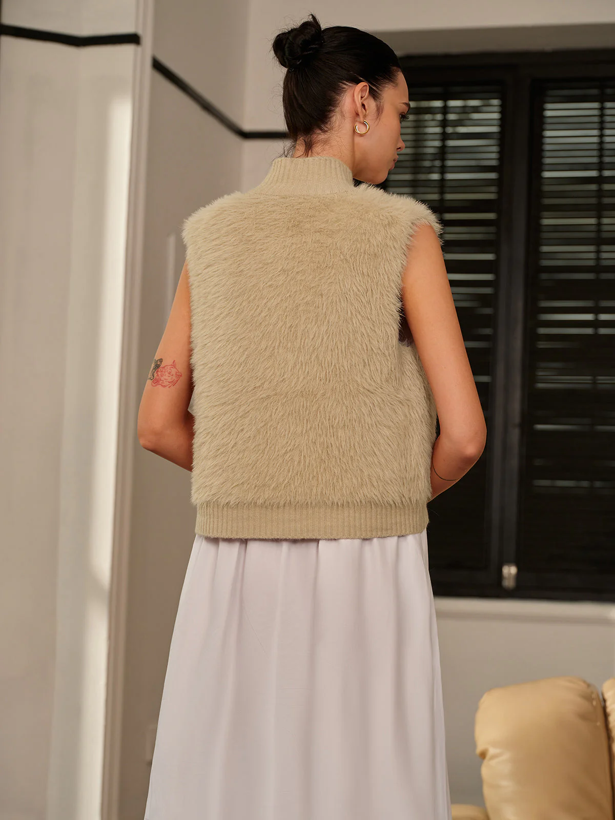 - Coupe : Sans manches et légèrement ajustée pour une silhouette élégante