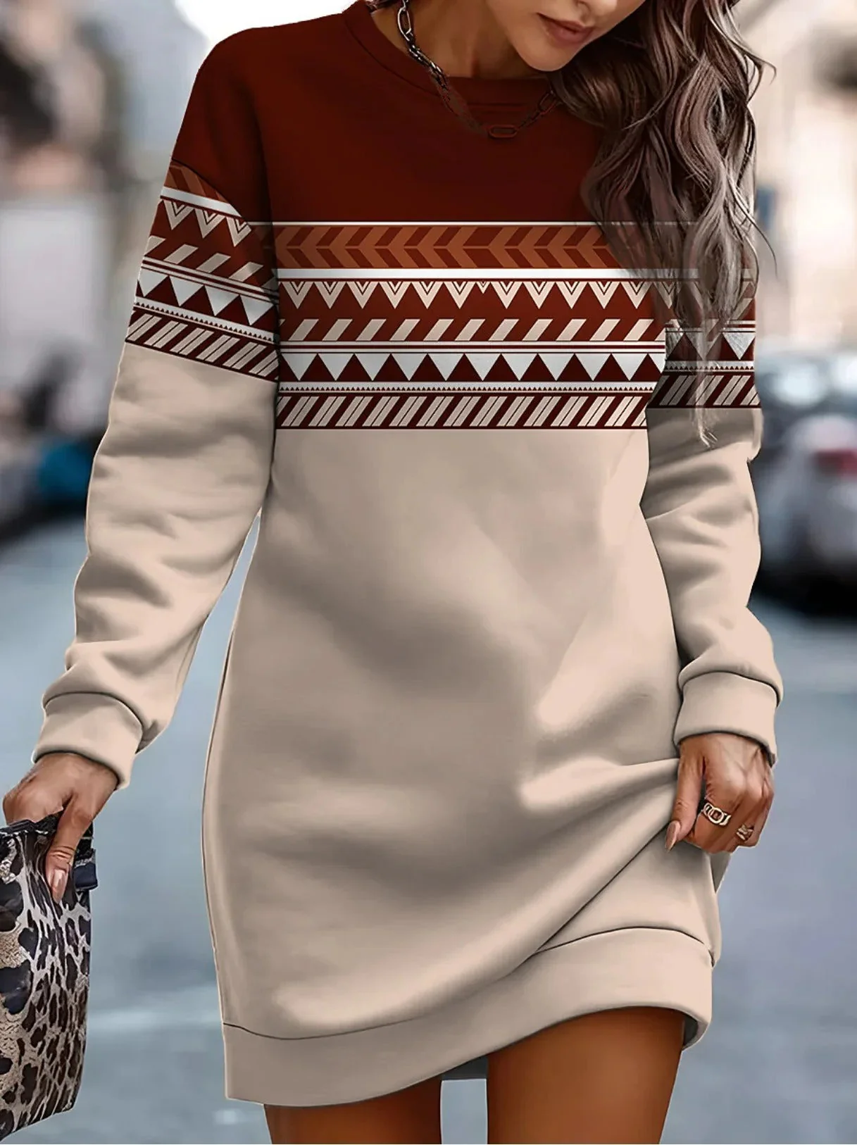 Gladys – Robe à col rond imprimée mode hiver
