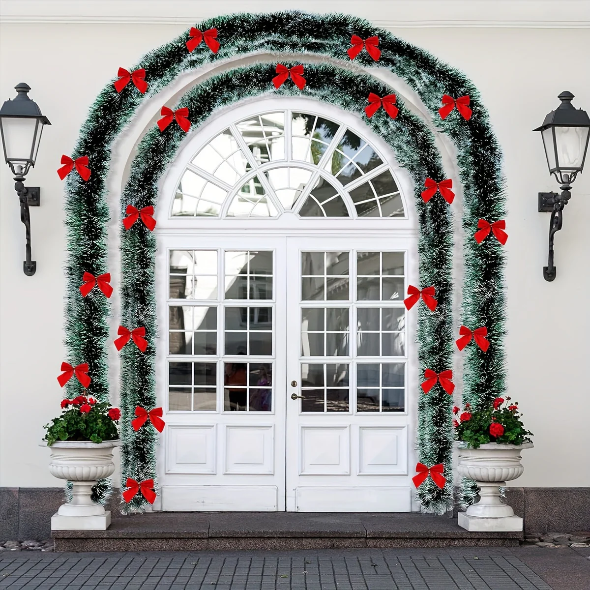 La Guirlande de Noël Festive est idéale pour une décoration de Noël élégante. En guirlande synthétique avec des nœuds rouges, elle apporte une ambiance de Noël lumineuse et joyeuse.