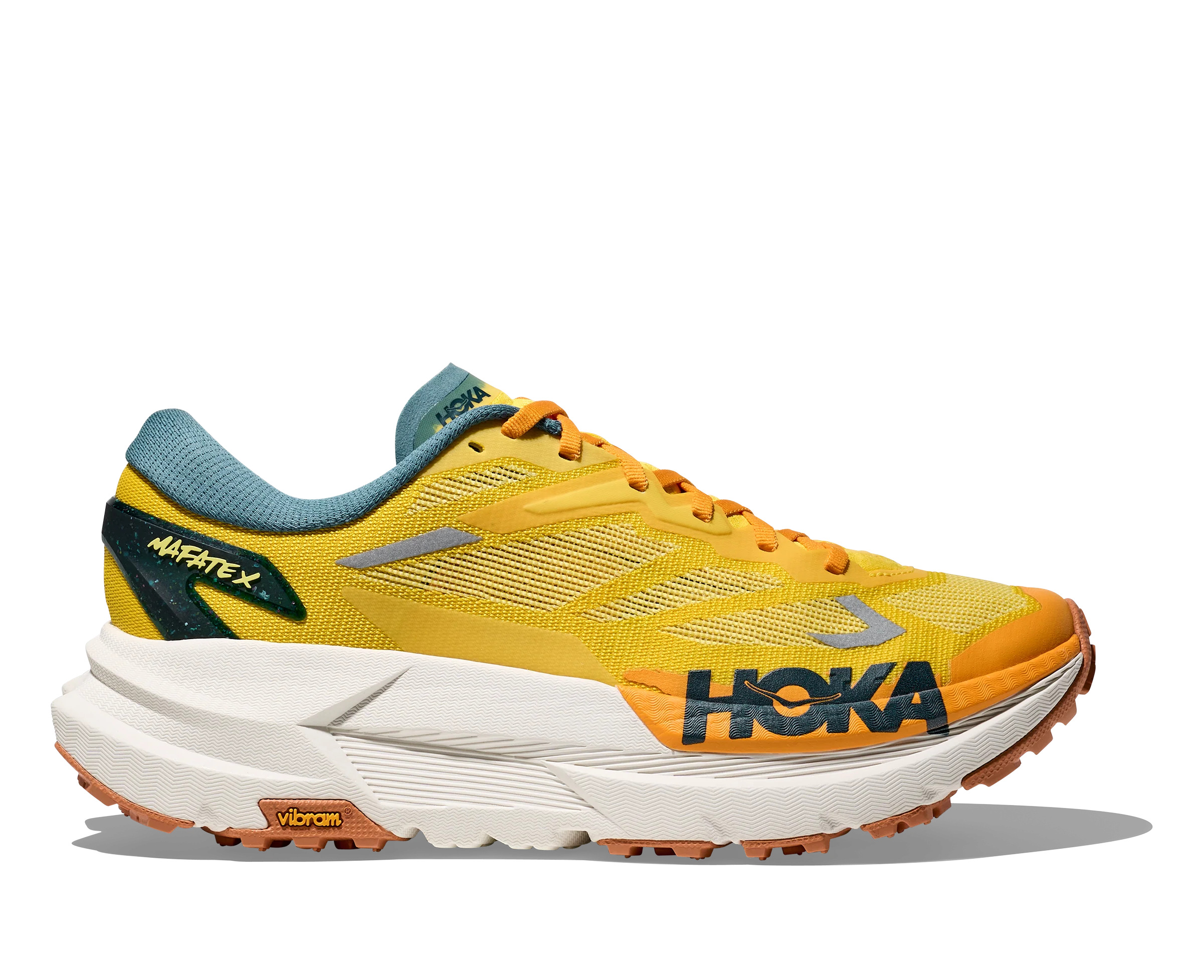La Mafate X est le tout nouveau modèle trail de Hoka, conçu pour les longues distances et l’ultra-trail. Elle combine un amorti généreux, une plaque carbone innovante et une adhérence de pointe pour vous accompagner sur tous les terrains.