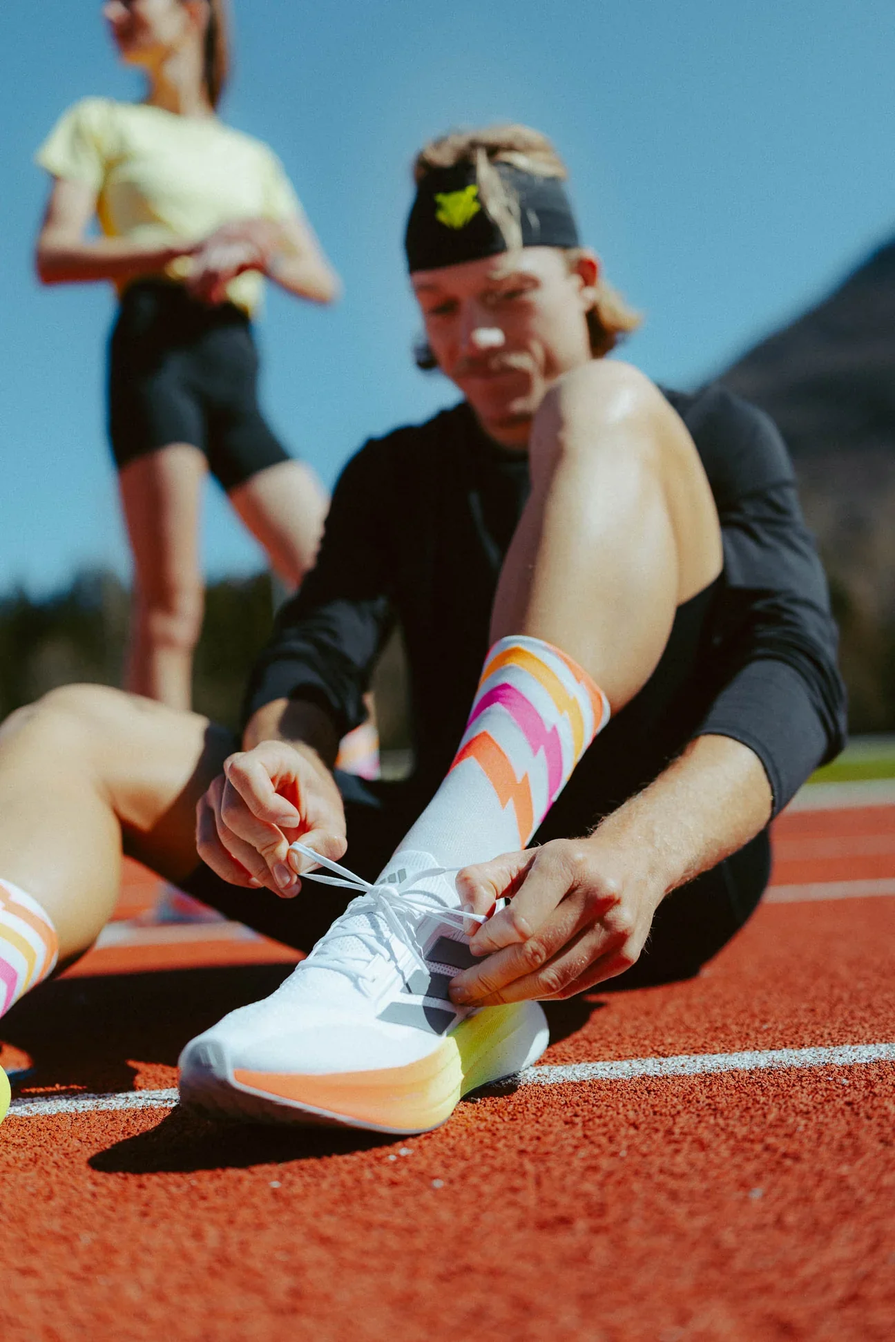 Chaussettes de course et de cyclisme exceptionnellement confortables, fabriquées en microfibre Dryarn® ultra-légère – Conçues en Allemagne, fabriquées en Italie. Offrant une respirabilité inégalée pour des performances maximales. Le large revers à double épaisseur empêche les glissements et limite la transpiration. Une fine structure en mesh sur le dessus du pied assure une ventilation optimale. La bande de compression intégrée au niveau de la voûte plantaire garantit un maintien sûr. Des renforts au niveau de la plante du pied, du talon et des orteils, ainsi qu’au niveau du tendon d’Achille, protègent les zones sensibles. Découvrez des performances de haut niveau et un confort absolu avec nos chaussettes de sport.