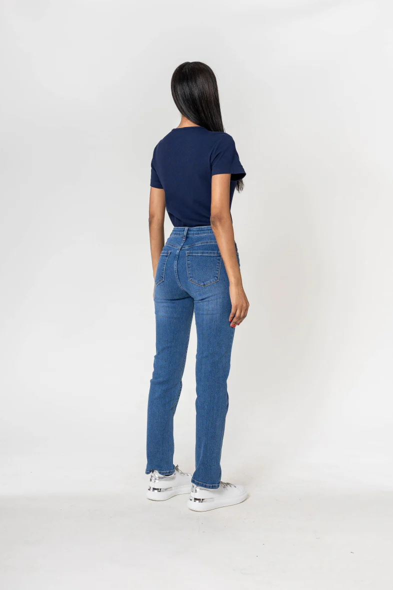 Jean regular droit taille haute et stretch, un bon basique qui accompagnera tous vos looks, du plus basique au plus extravagant.