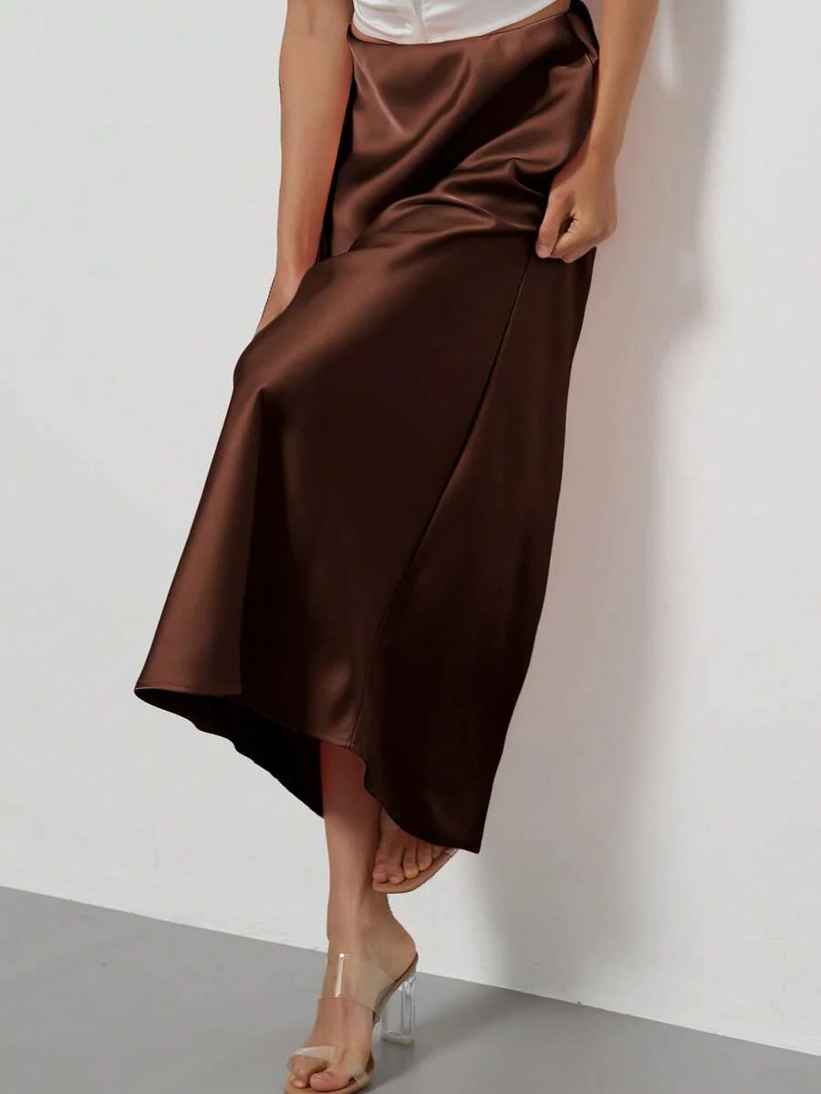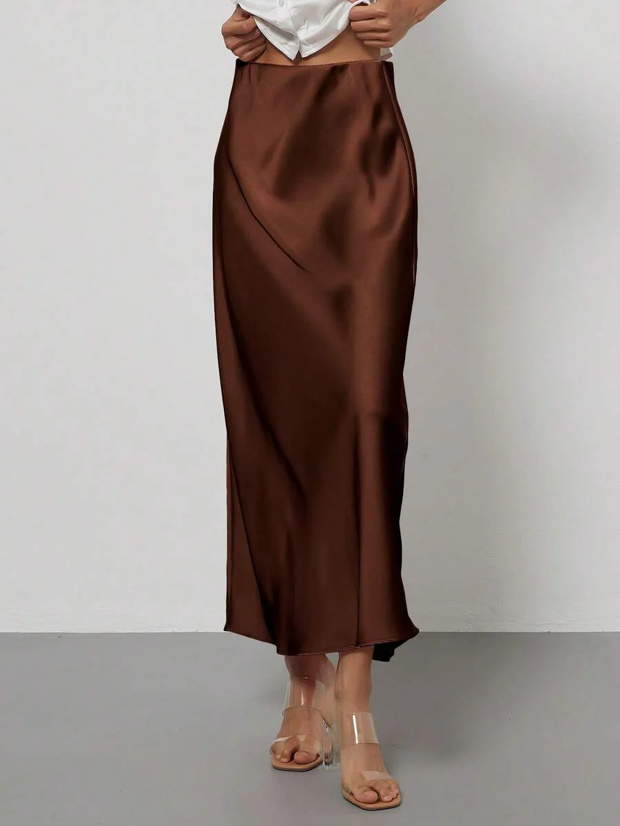 • Silhouette : Trapèze ; Longueur : Maxi ; Taille : Taille mi-haute naturelle ; Texture : Satin ; Motif : Uni ; Doublure : Non doublée ; Fermeture : Non spécifiée ; Notes de style : Intemporel, élégant, polyvalent, coupe chic, touche de modernité, indispensable au quotidien, facile à superposer. Épaisseur :