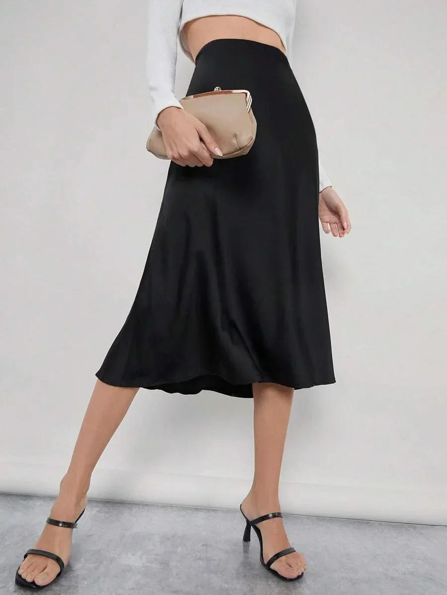 Soyez le premier à laisser votre avis sur “Jupe longue en satin taille haute pour le bureau, style professionnel chic”