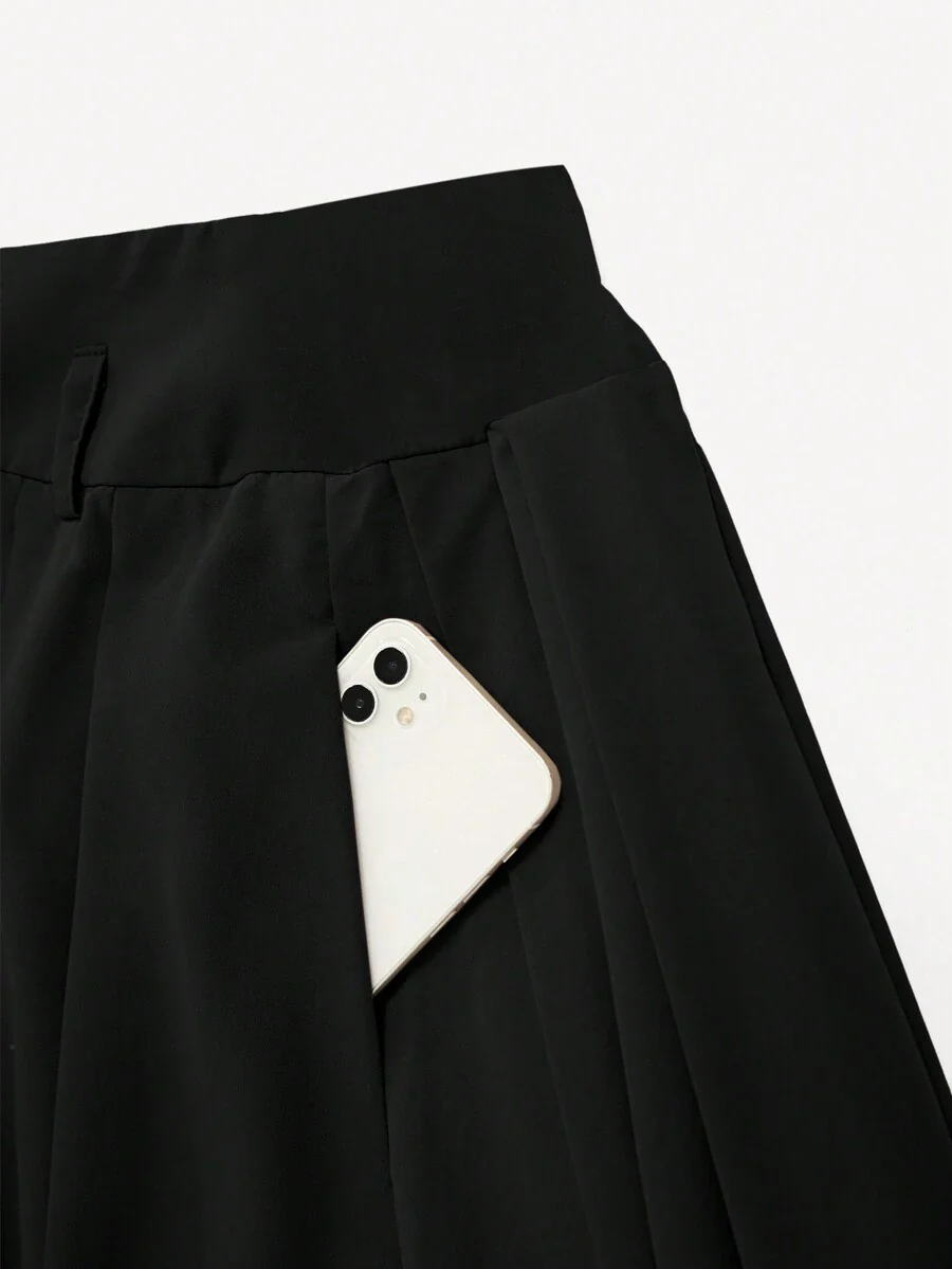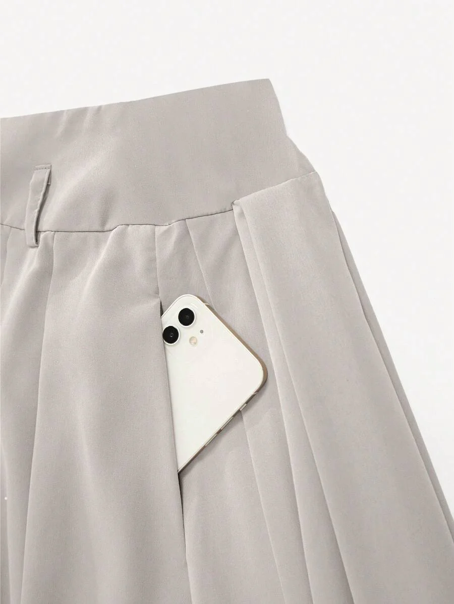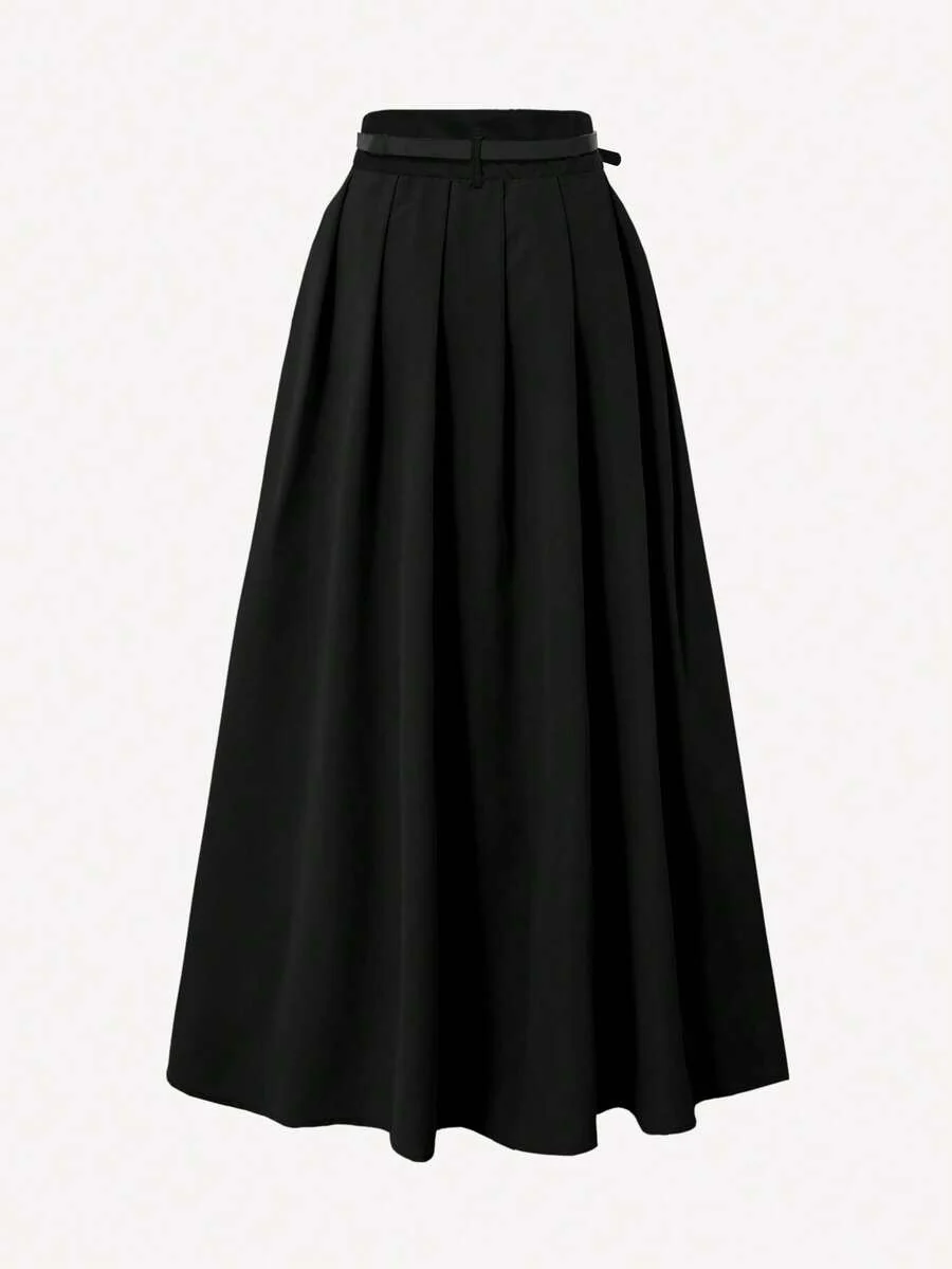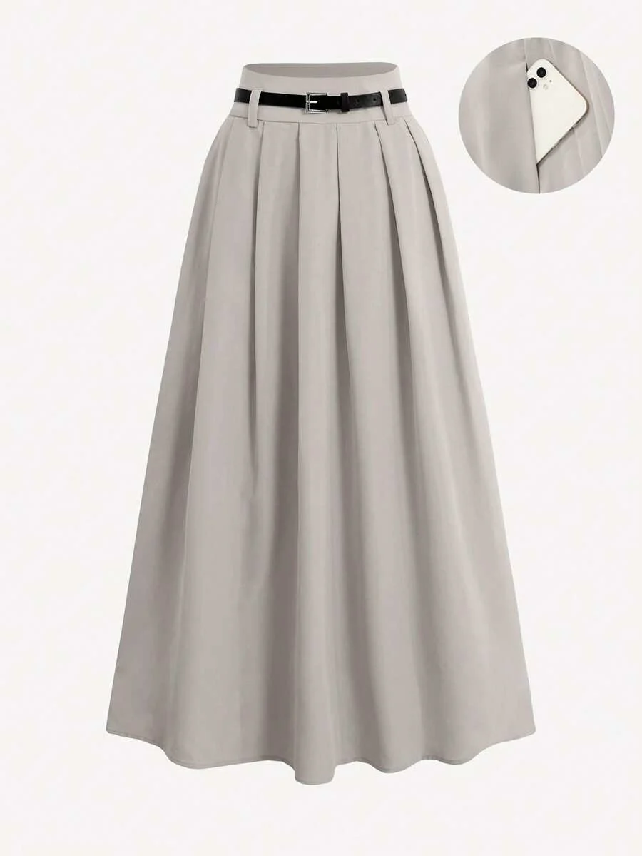 Jupe plissée taille haute avec ceinture décorative et poches
