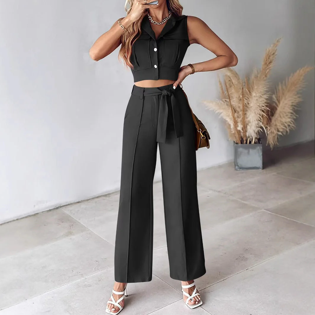 Vous recherchez un ensemble élégant et percutant qui se démarque sans effort ? Ce set avec un top court sans manches et un pantalon large à ceinture combine à merveille style moderne et structure classique. Le top court met en valeur votre silhouette, tandis que la ceinture souligne la taille pour un effet à la fois flatteur et sophistiqué.