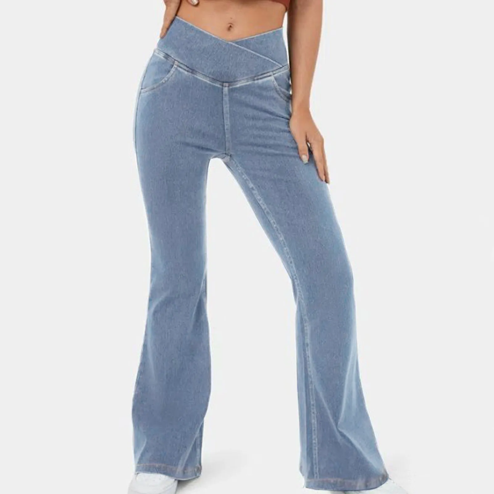 Restez confortable et élégant avec le jean flare à taille élastique, qui offre à la fois une coupe flatteuse et un confort tout au long de la journée. Ce jean est doté d’une taille haute et d’une ceinture élastique qui assure un ajustement parfait et souple sans sacrifier le style. Les jambes évasées offrent une silhouette rétro qui allonge les jambes tout en laissant une grande liberté de mouvement. Que vous le portiez habillé avec des talons ou décontracté avec des baskets, ce jean allie sans effort confort et style classique.