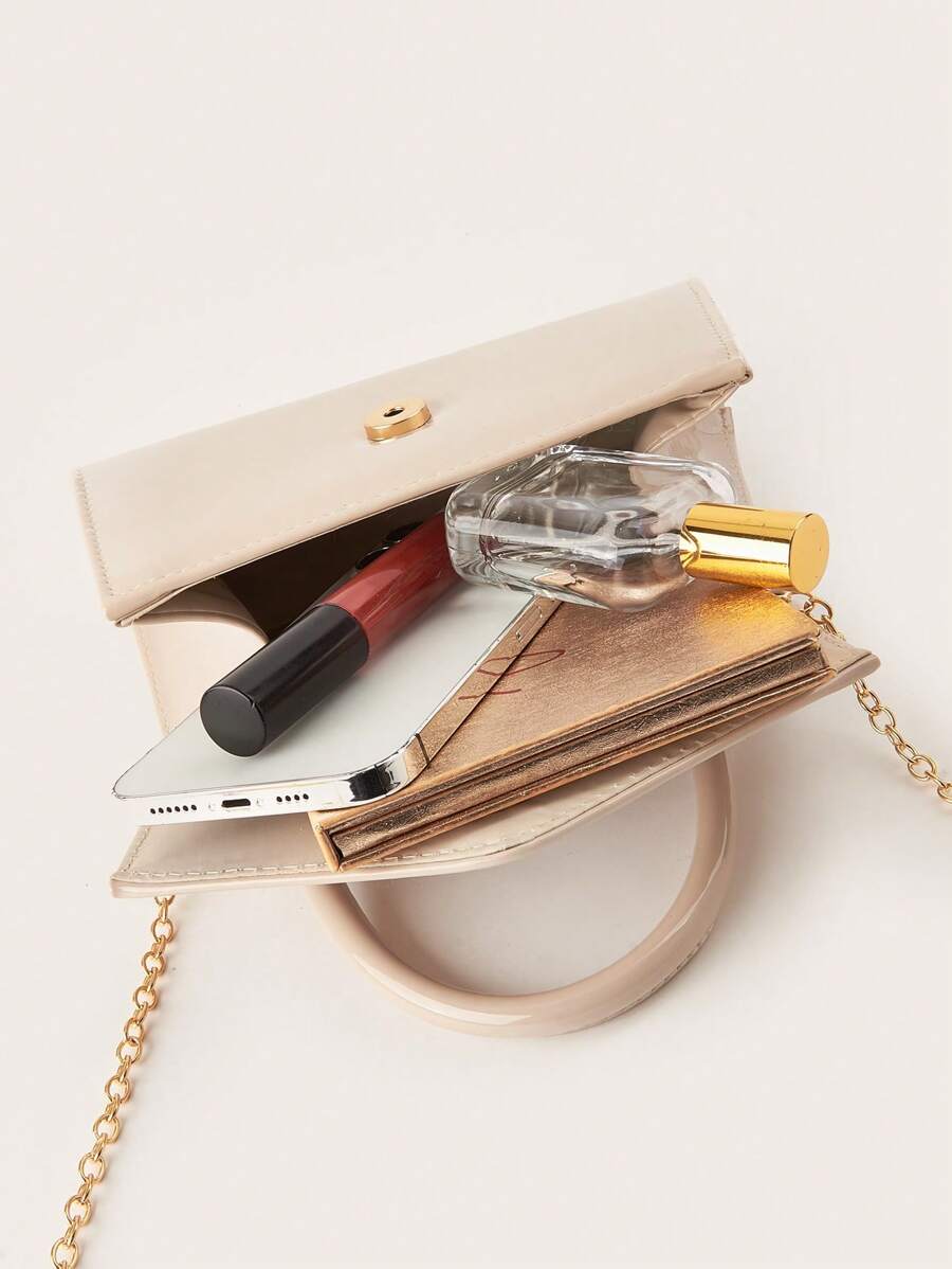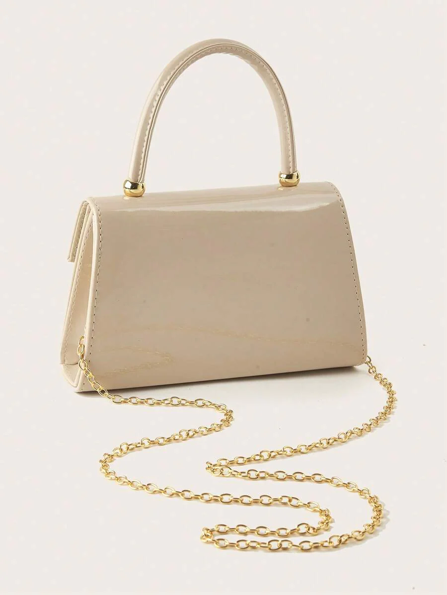 Composition: 100% Polyester base with a PU coating for a glossy, mirror-like finish; interior lining in smooth polyester for durability. Design: Square, compact silhouette with a front flap and a chain strap; colorblock in apricot tones with ruched detailing along the panels for texture; refined, modern aesthetic. Thickness: Medium-weight exterior designed to hold shape through […]