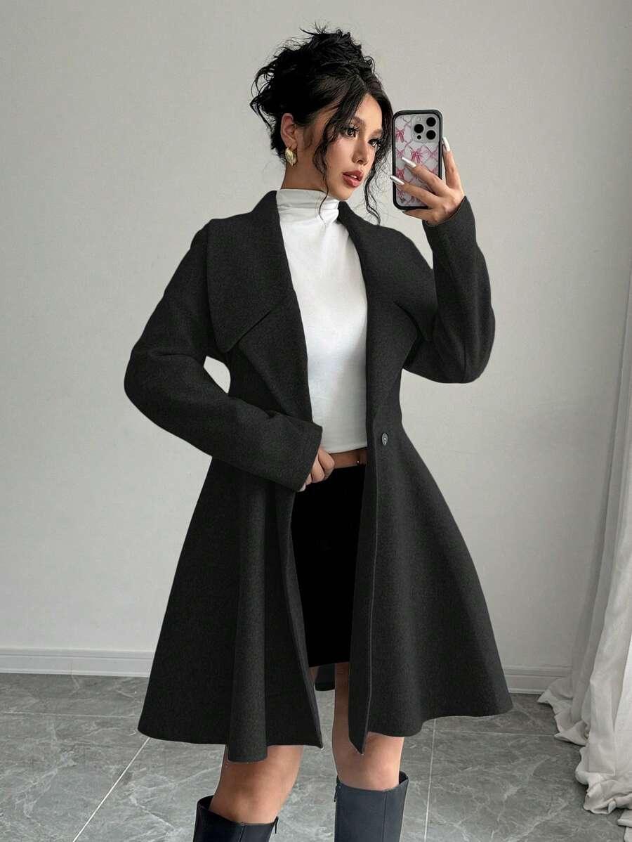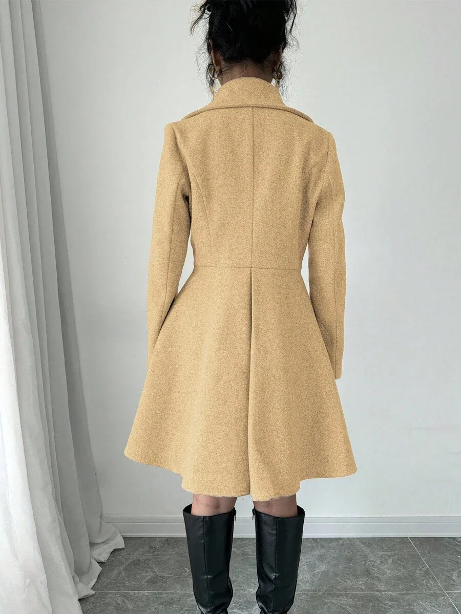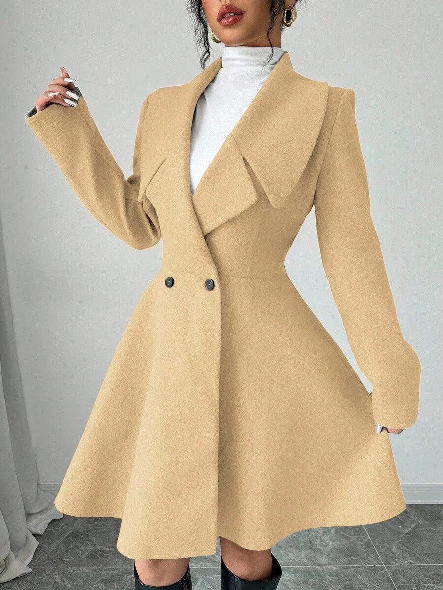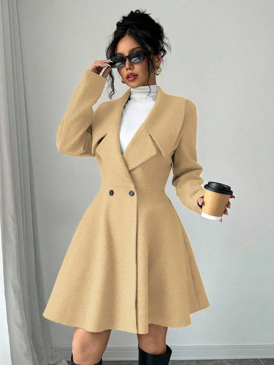 Le manteau en laine minimaliste élégant incarne élégance intemporelle et luxe tranquilleSon encolure cascade raffinée drape gracieusement, créant une silhouette chic et moderne. Des lignes épurées et une coupe subtile définissent un profil minimaliste, tandis que les poches extérieures offrent des détails fonctionnels. Les doubles boutons ajoutent une touche de style argent ancien qui rehausse chaque tenue.
