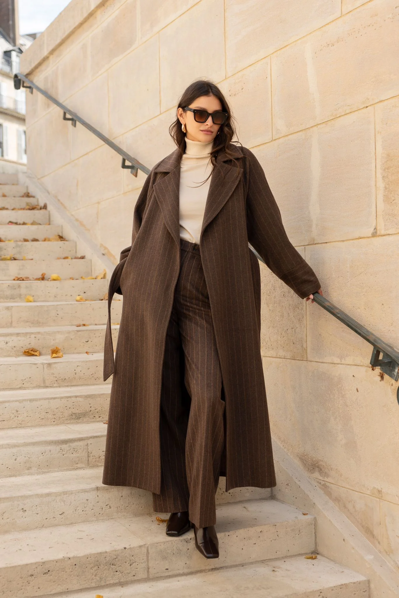 - Manteau long à rayures, idéal pour un look élégant et graphique tout au long de la saison.