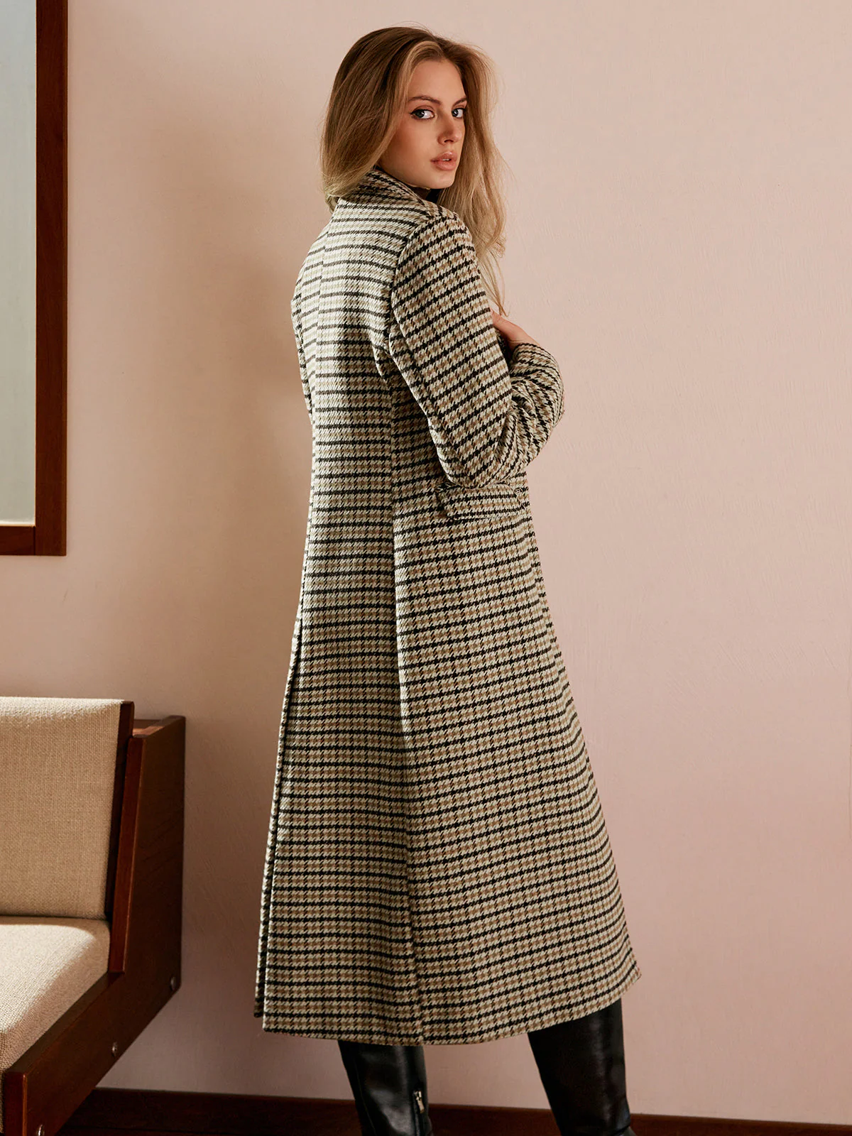 Ce manteau à carreaux offre une allure intemporelle avec sa coupe droite et son tissu élégant. Idéal pour compléter vos tenues d’hiver, il allie chaleur, confort et style.