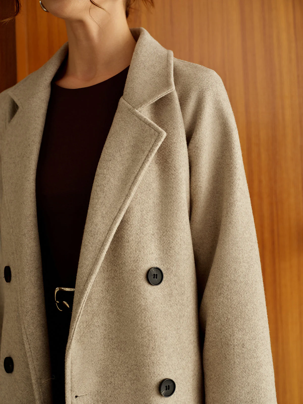 - Coupe : Longue avec double boutonnage