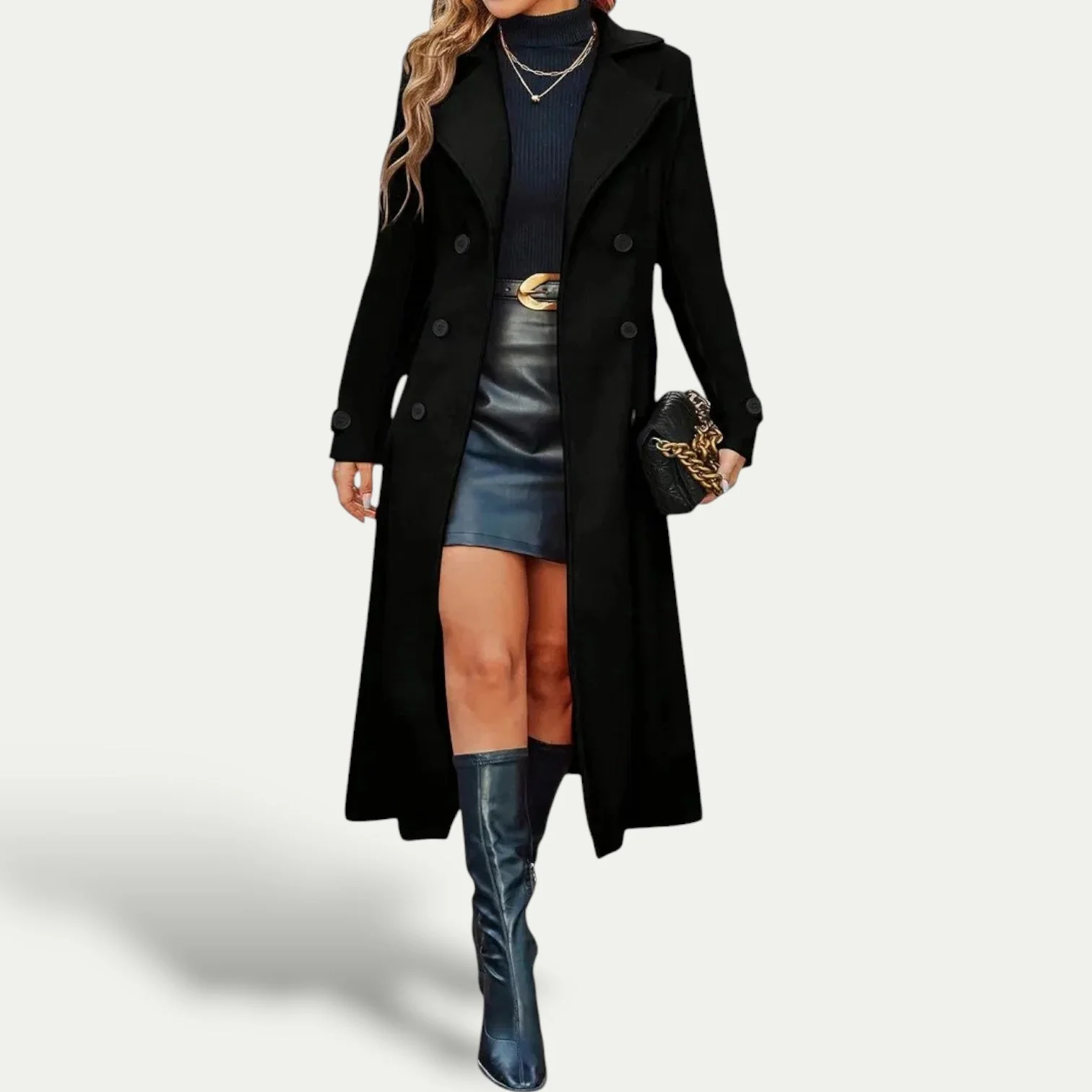 Ce manteau long pour femme à double rangée de boutons est un véritable atout mode pour l’automne. Sa silhouette structurée et ses détails raffinés apportent une allure moderne et élégante à toutes vos tenues.