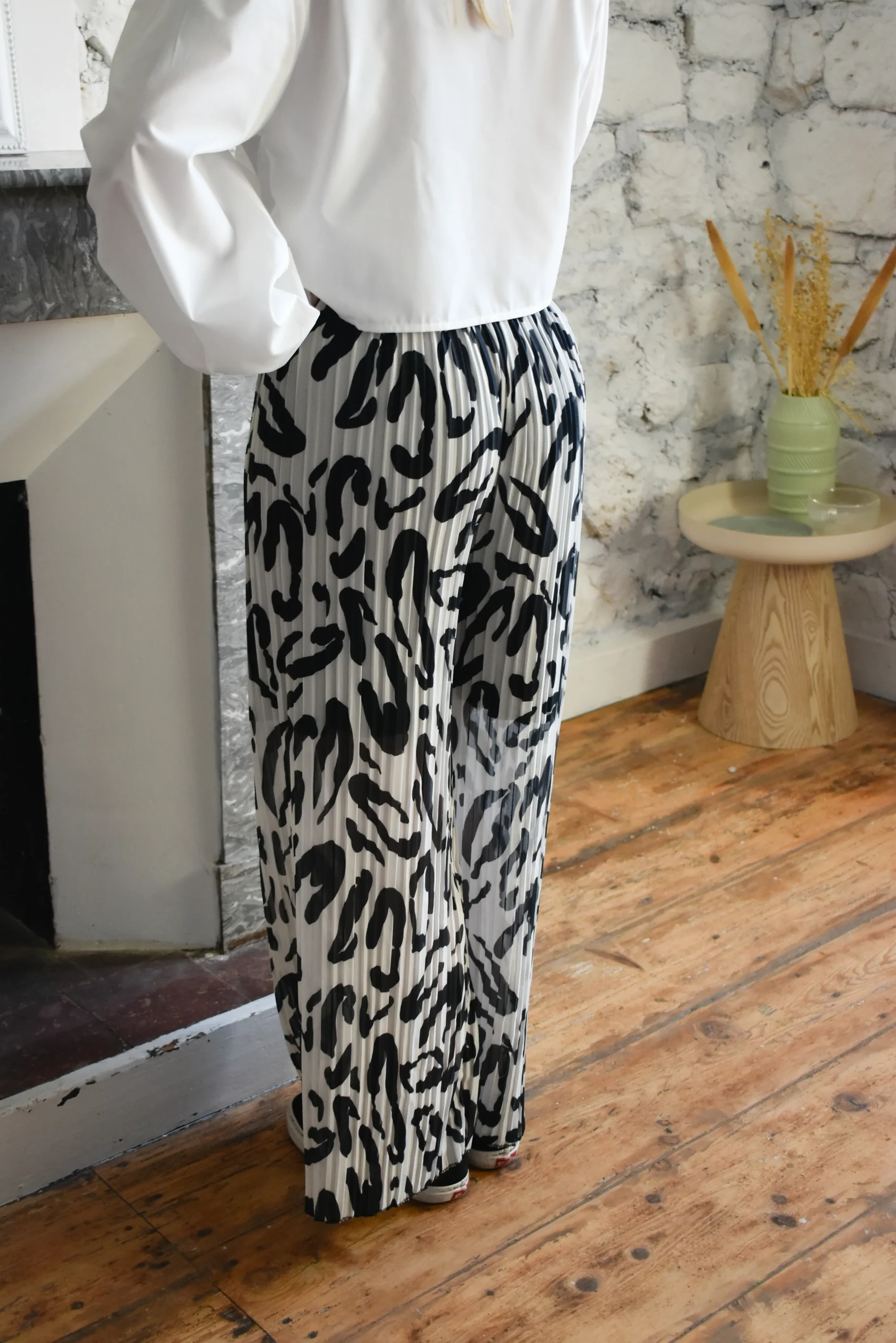 Pantalon plissée très fluide, imprimé avec doublure en viscose