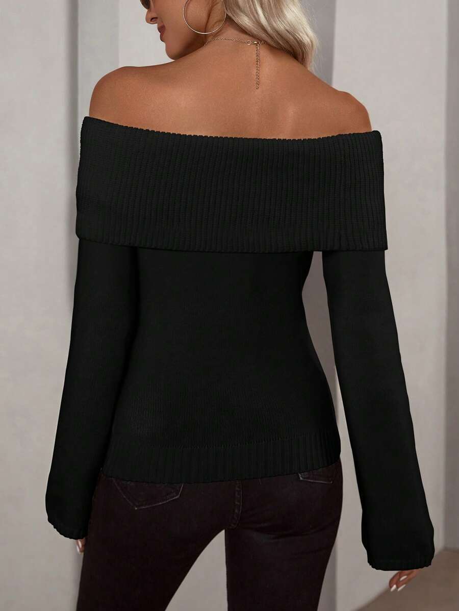 Pull en maille côtelée à épaules dénudées et revers