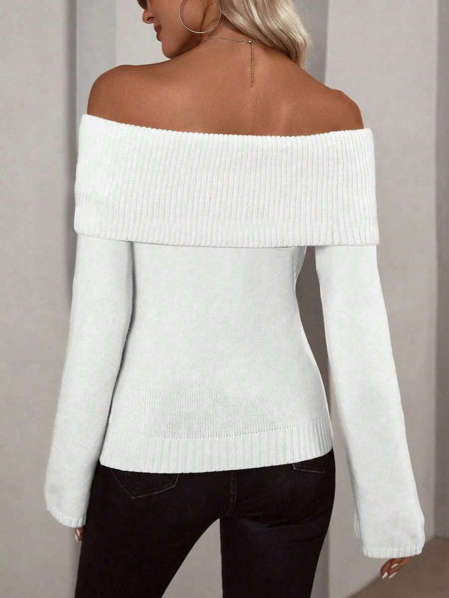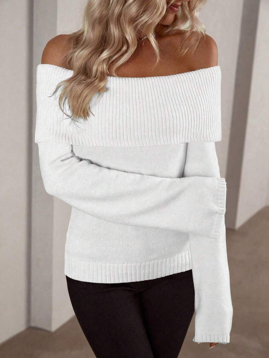 - Silhouette : coupe ajustée, encolure épaules dénudées en maille côtelée ; style pull sans fermeture ; motif uni ; manches longues ; ourlet régulier ; non doublé pour une couche légère et polyvalente ; facile à superposer et minimaliste avec un charme élégant et intemporel.