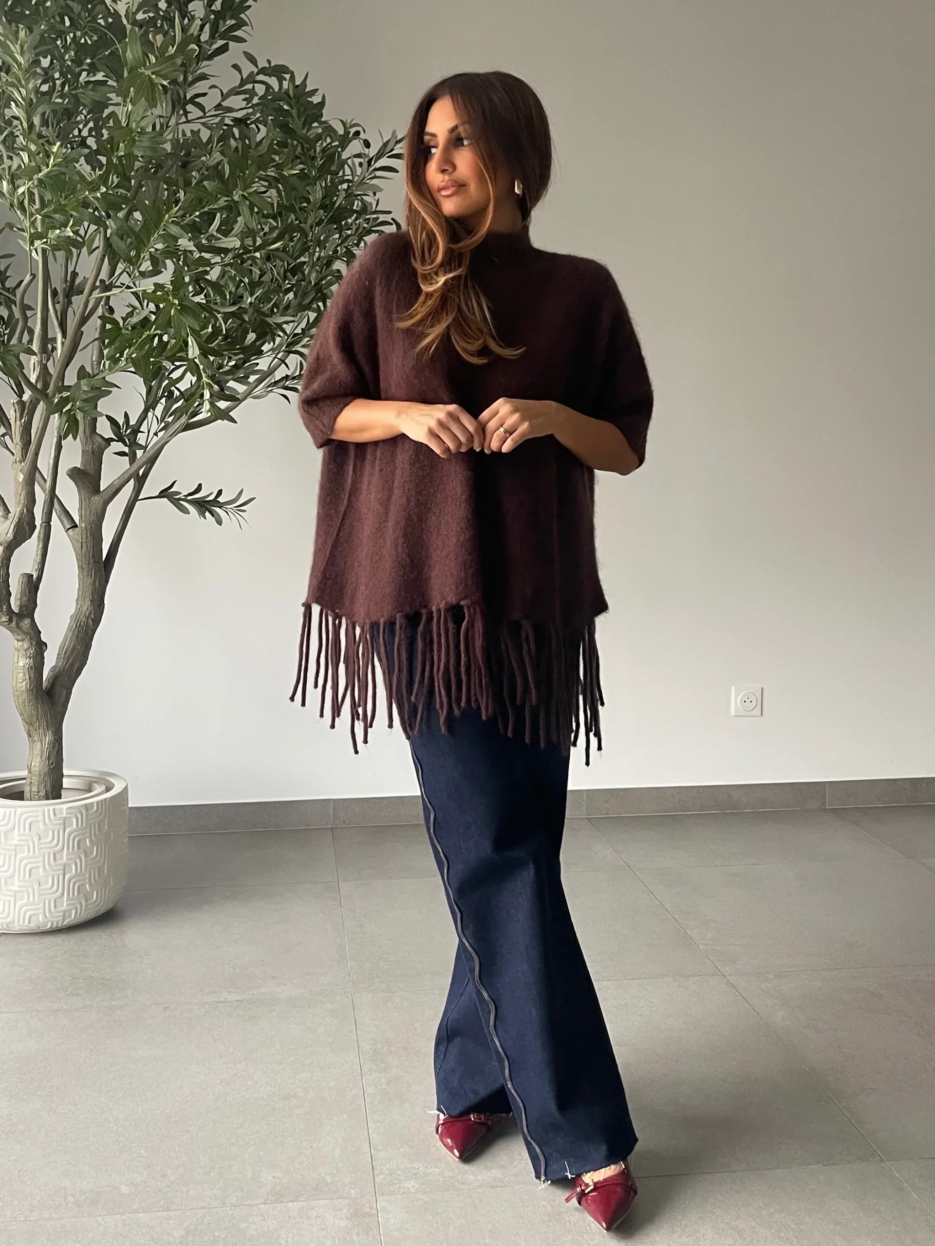 - Pull oversize en maille, idéal pour un look à la fois chaleureux et tendance.