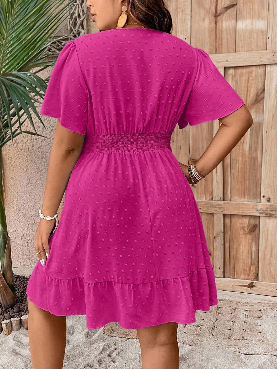 Robe grande taille à volants et col en V avec taille cintrée