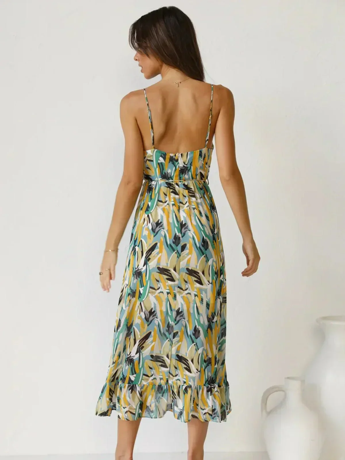 La Robe Soleil Bohème séduit par sa coupe légère, ses fines bretelles et son imprimé vibrant. Elle ondule au rythme du vent et vous accompagne aussi bien à la plage qu’en balade en ville. Un essentiel bohème-chic à glisser dans votre valise estivale.
